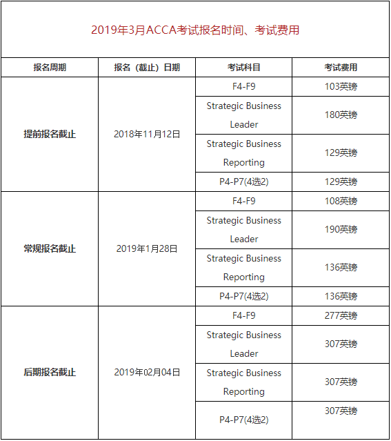 2019年ACCA考试报名时间已出,时间为: