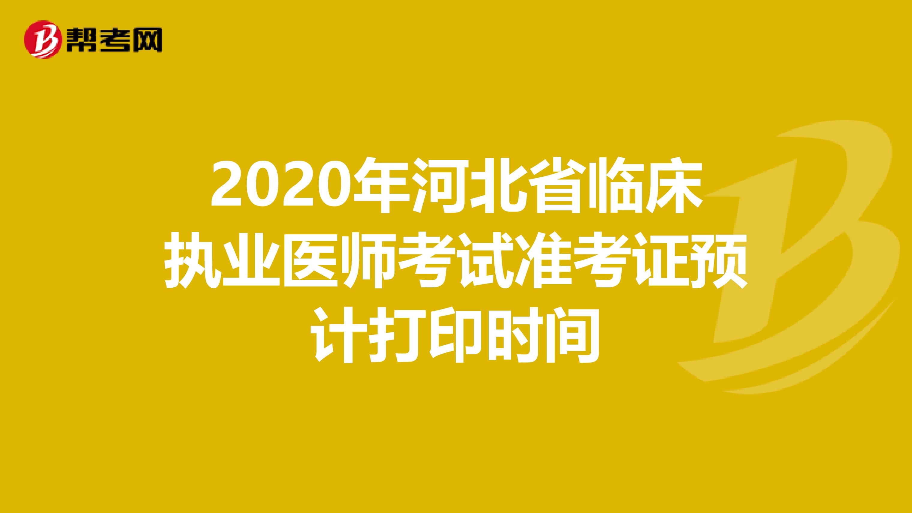 2020年河北省临床执业医师考试准考证打印时间什么时候?网上打印时打印入口在哪里?最近许多小伙伴都在询问有关2020年临床执业医师准考证打印的问题,下面大家就和帮考网一起来了解吧!