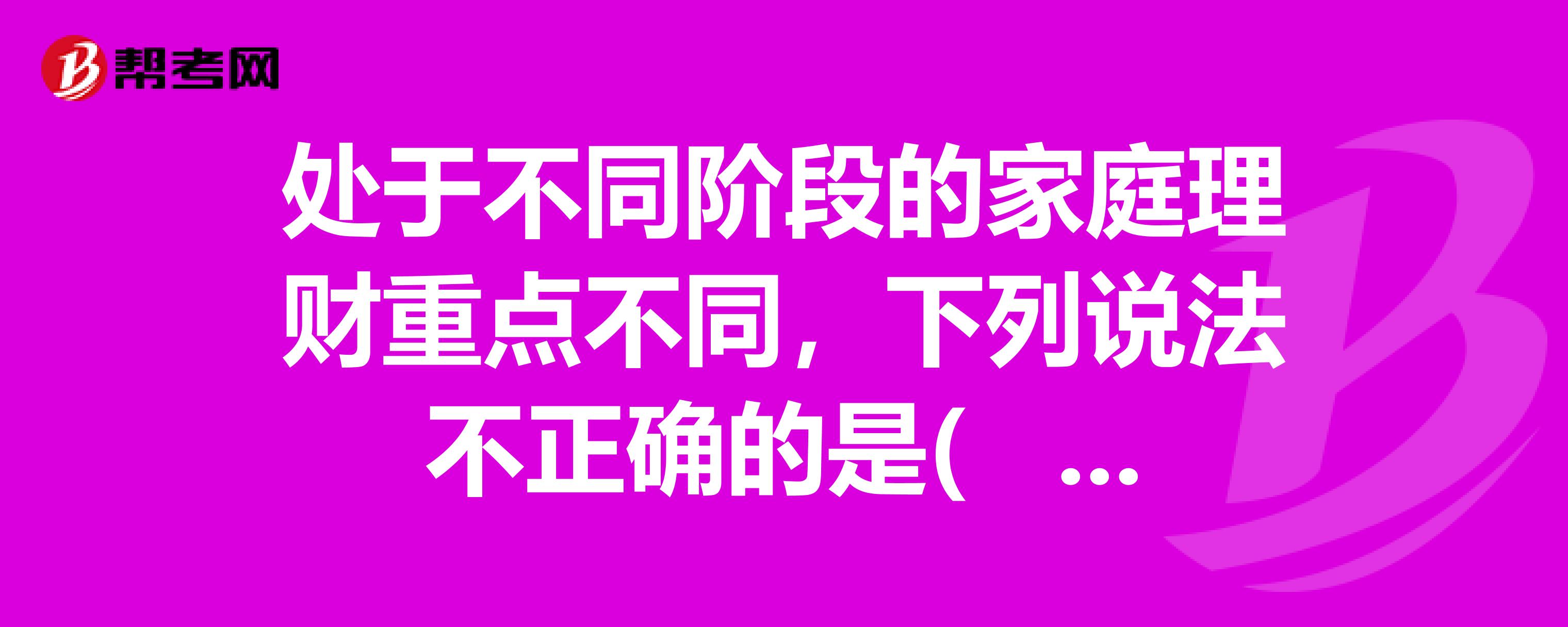 D、家庭衰老期的核心资产配置应以股票为主
