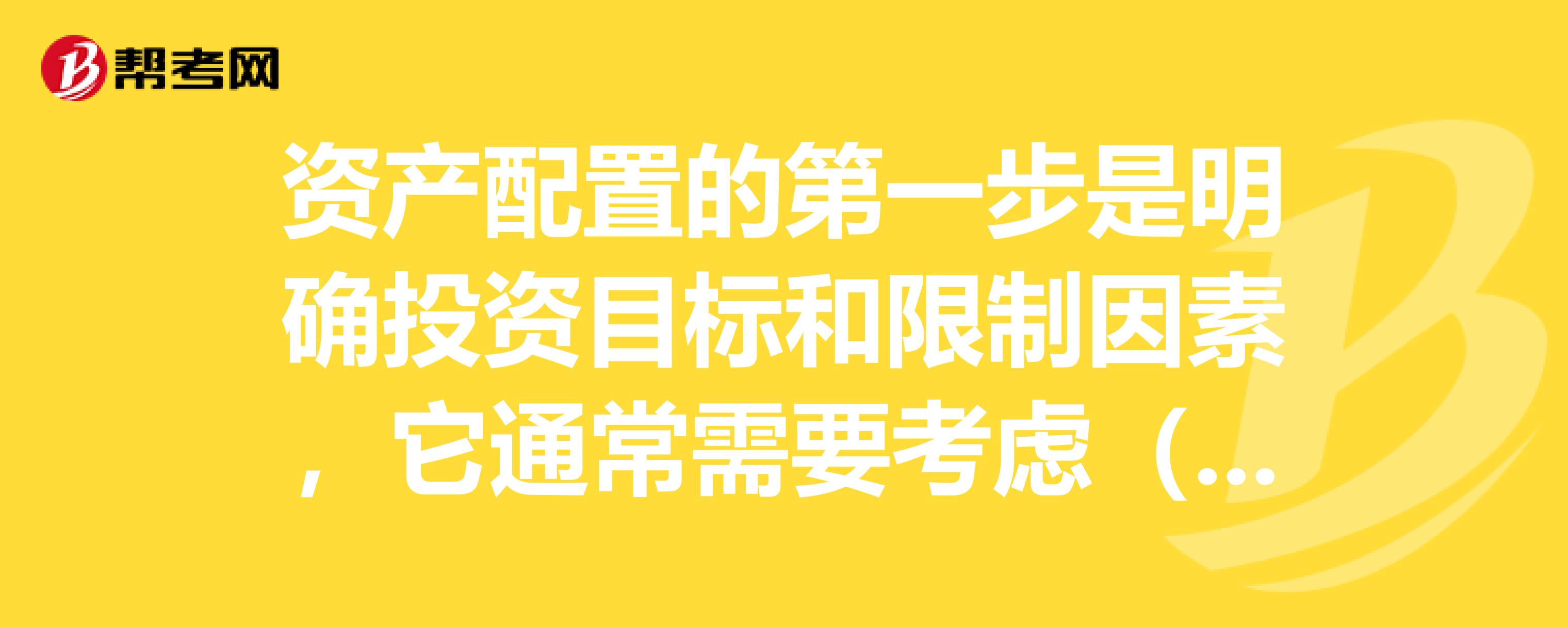 资产配置的意义和主要考虑因素是什么?:资产配置的意义和主要考虑因素是什么?可分为全球资产配置、股票债券资产配置和行业风格资产配置;可分为战略性资产配置、战术性资产配置和资产混合配置;可分为买入并持有策略、恒定混合策略、投资组合保险策略和战术性资产配置策略。资产配置是根据投资需求将投资资金在不同资产类别之间进行分配,二、进行资产配置主要考虑的因素,包括年龄、投资周期、资产负债状况、财务变动状况、财富净值和风险偏好等。