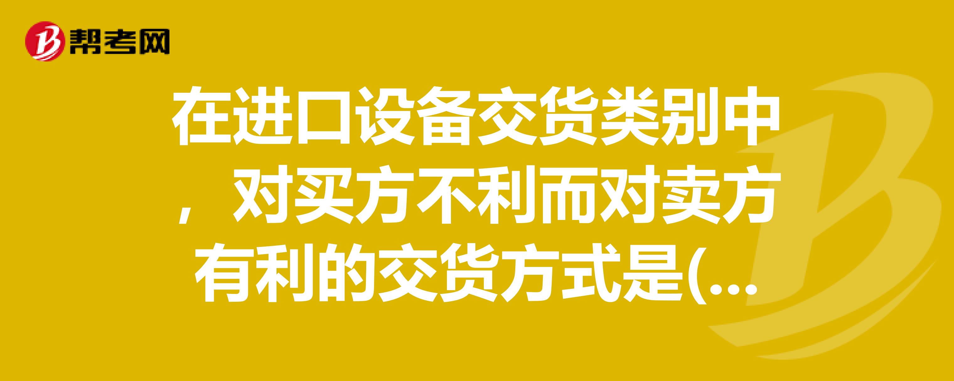 在进口设备交货类别中,对买方不利而对卖方有利的交货方式是()。请帮忙回答,谢谢