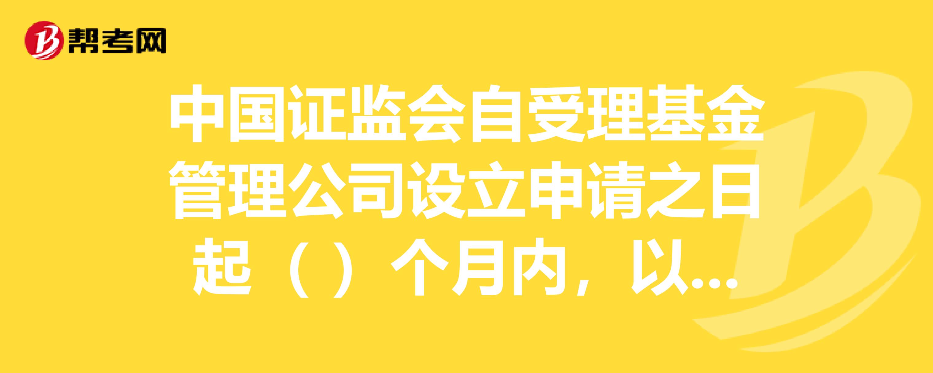 中国证监会自受理基金管理公司设立申请之日起什么个月内,以审慎监管原则依法审查,做出批准或不予批准的决定。在线等