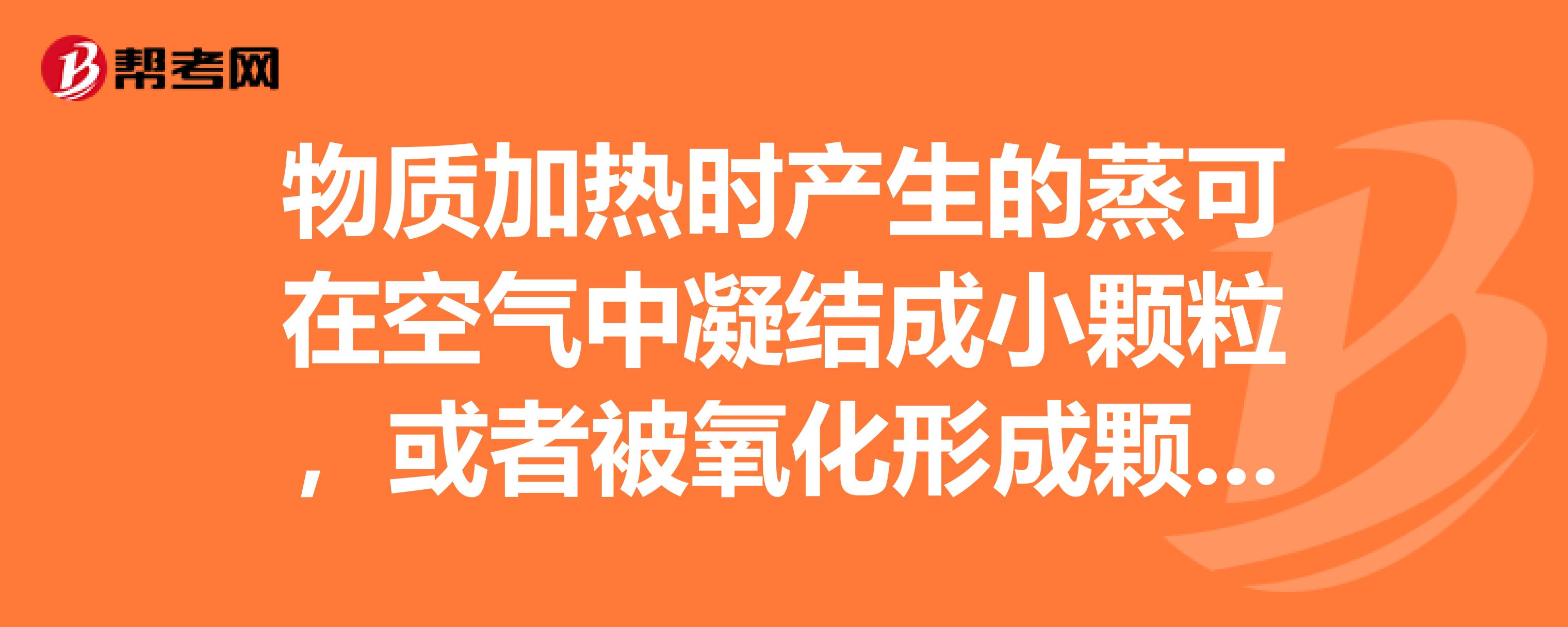 物质加热时产生的蒸可在空气中凝结成小颗粒,或者被氧化形成颗粒状物质,其所形成的微粒直径多小于什么um,如熔炼黄铜时,锌蒸气在空=气中冷凝、氧化形成氧化锌烟尘。在线等