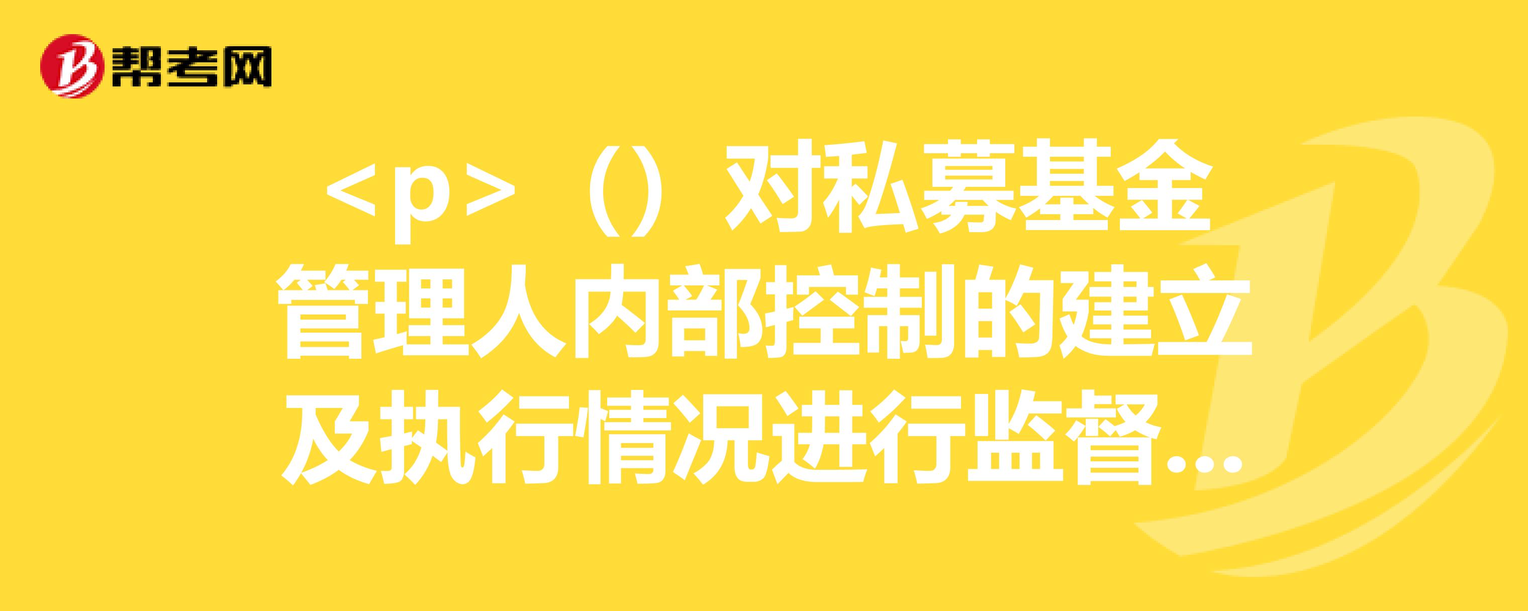 基金管理人内部控制中监察稽核控制的内容有哪些?:基金管理人内部控制中监察稽核控制的内容有哪些?基金管理人应当设立监察稽核部门,根据公司监察稽核工作的需要和董事会授权。就内部控制制度的执行情况独立地履行检查、评价、报告、建议职能。【例题·单选题】某基金公司的监察稽核控制如下,Ⅰ.监察稽核部作为二级部门在投资部门下设立,Ⅳ.监察稽核部门主要对股东大会负责,该基金公司的监察稽核控制不符合规定的是( )【解析】基金管理人应当设立监察稽核部门