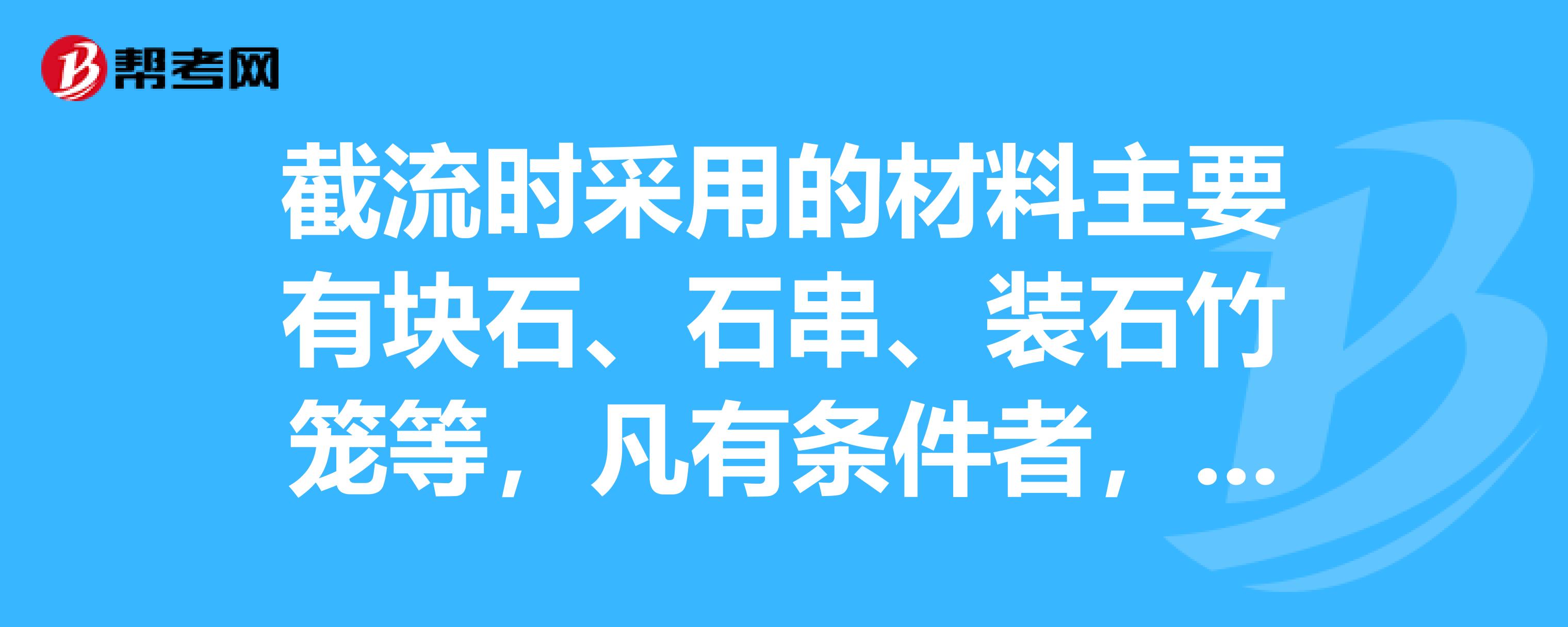 截流时采用的材料主要有块石、石串、装石竹笼等,凡有条件者,均应优先选用什么截流。谢谢