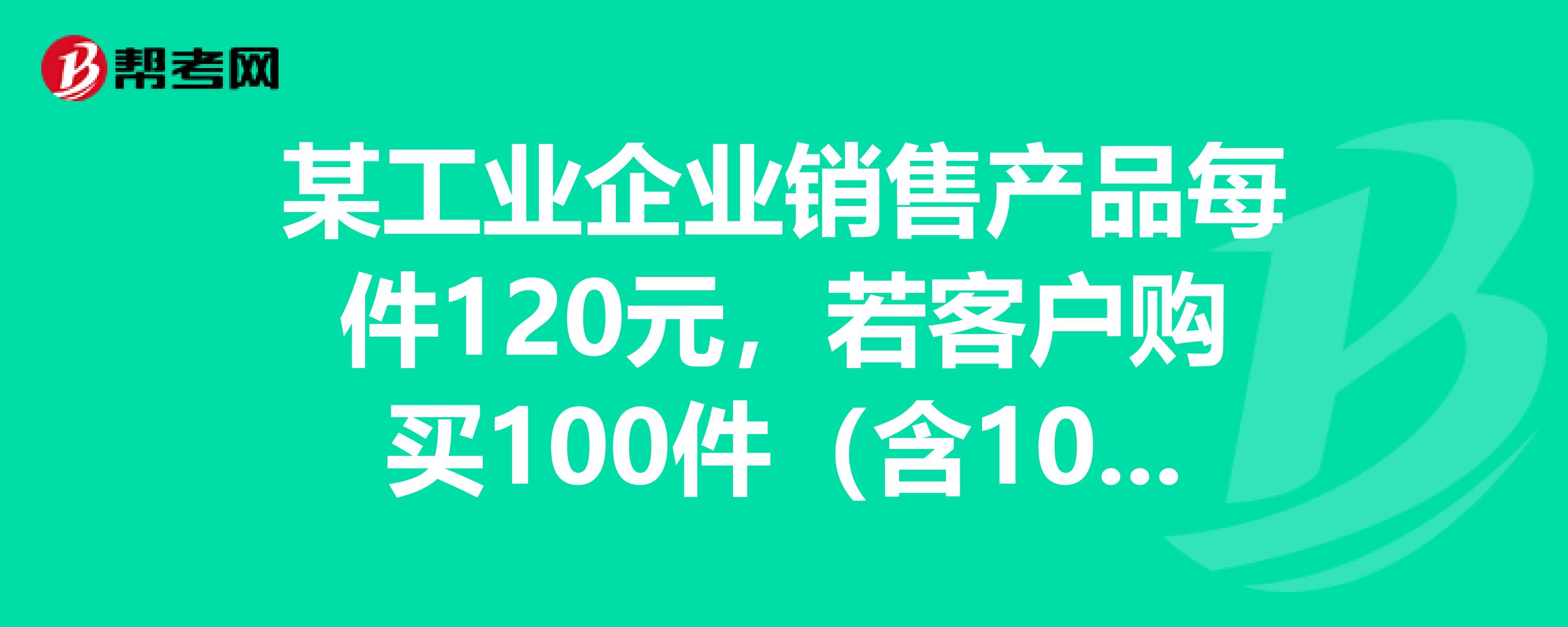某工业企业销售产品每件120元,若客户购买100件(含100件)以上,每件可得到20元的商业折扣。某客户2004年12月10日购买该企业产品100件,按规定现金折扣条件为2/10,1/20,n/30。适用的增值税税率为17%。该企业于12月29日收到该笔款项时,应给予客户的现金折扣为()元。假定计算现金折扣时考虑增值税。请帮忙回答,谢谢