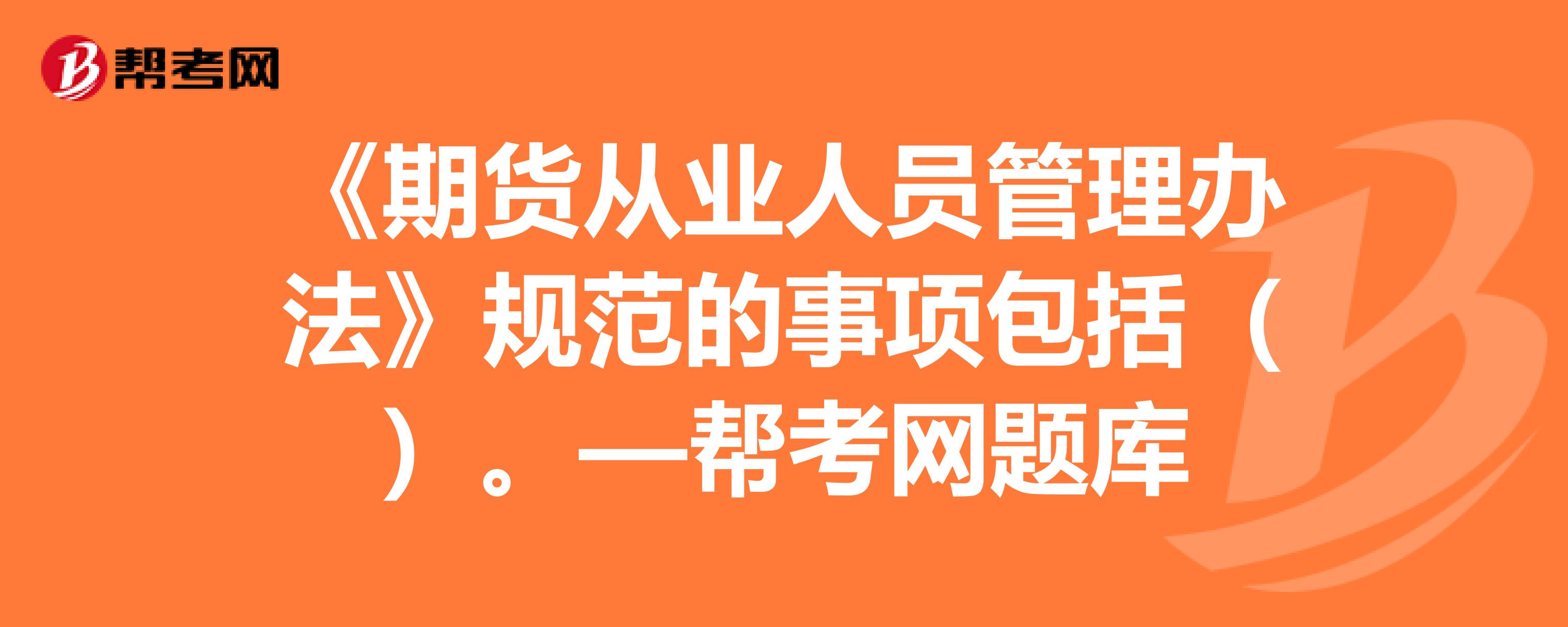 期货从业人员专业胜任能力内容是什么?:期货从业人员专业胜任能力内容如下:第十六条从业人员在从事期货业务前,应当参加岗前培训并通过考核,具备相应的专业知识、技能和职业道德。第十七条从业人员应当加强业务知识更新,第十八条机构的管理人员应当对下属从业人员的工作进行指导、监督和支持,使其保持并不断提高专业胜任能力。【例题·单选题】《期货从业人员执业行为准则》没有规定的是。【例题·单选题】为保证期货从业人员不断提高专业水平