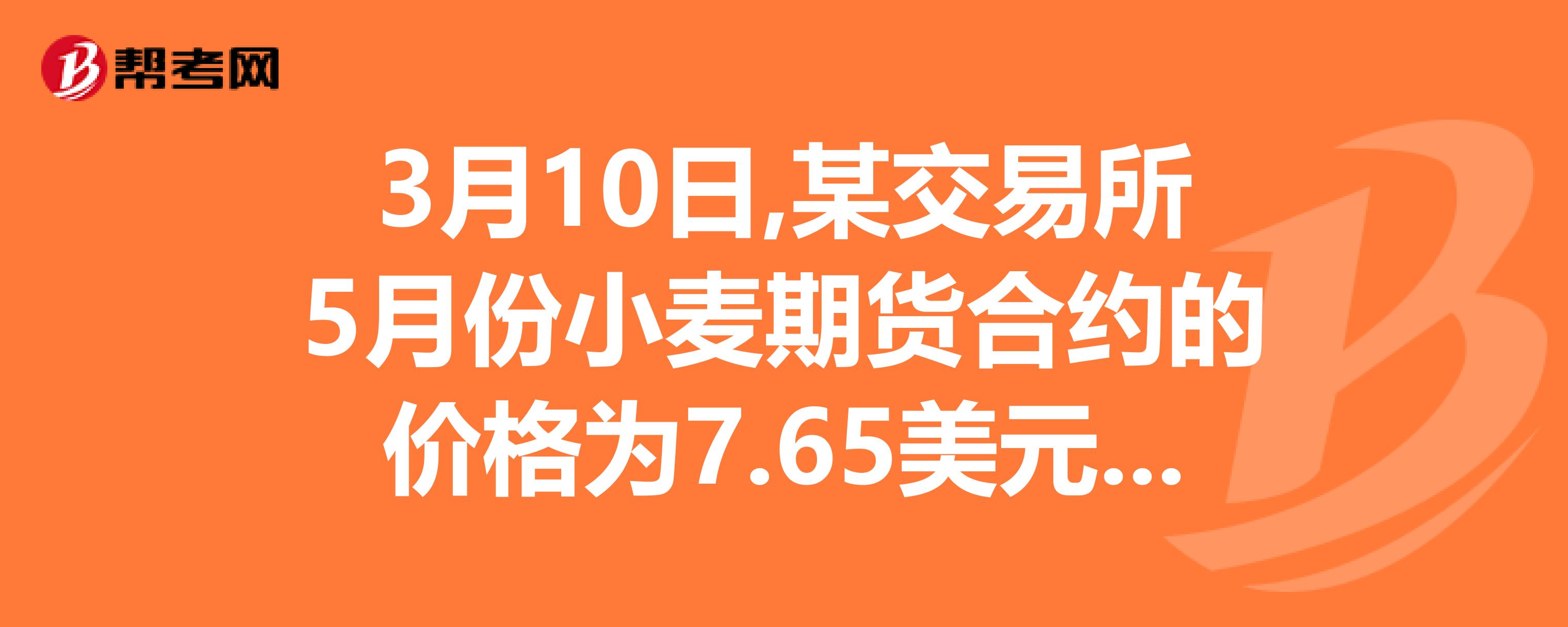 D、5月份小麦合约的价格跌至7.60美元/蒲式耳,7月份小麦合约的价格涨至7.55美元/蒲式耳