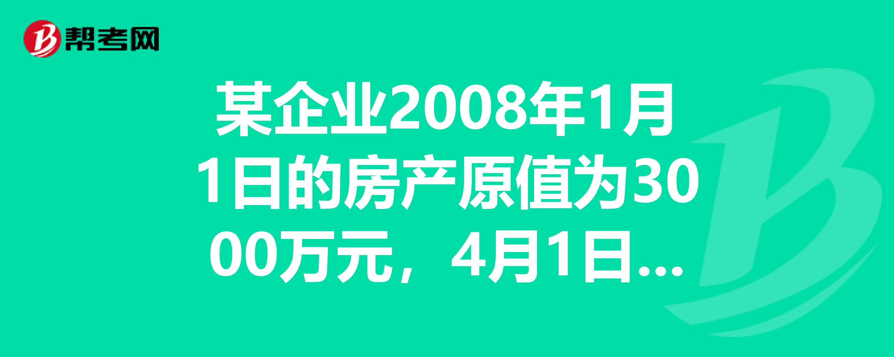 某企业2008年1月1日的房产原值为3000万元,4月1日将其中原值为1000万元的临街房出租给某连锁商店,月租金5万元。当地政府规定允许按房产原值减除20%后的余值计税。该企业当年应缴纳房产税()万元谢谢