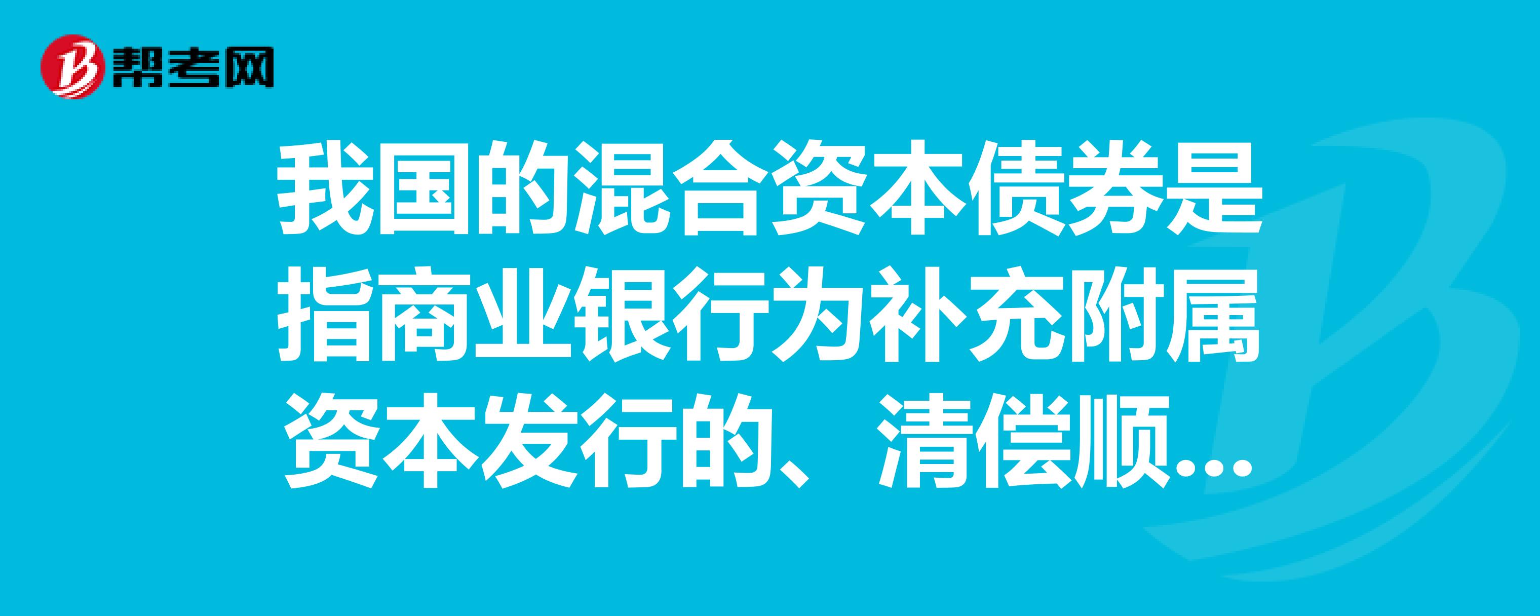 混合资本债券的概念、发行条件和发行方式是怎样的?:混合资本债券的概念、发行条件和发行方式是怎样的?混合资本债券属于混合型证券,商业银行可通过发行一定额度的混合资本债券,商业银行为补充附属资本发行的、清偿顺序位于股权资本之前但列在一般债务和次级债务之后、期限在15年以上、发行之日起10年内不可赎回的债券。但应同时报送近3年按监管部门要求计算的资本充足率信息和其他债务本息偿付情况。
