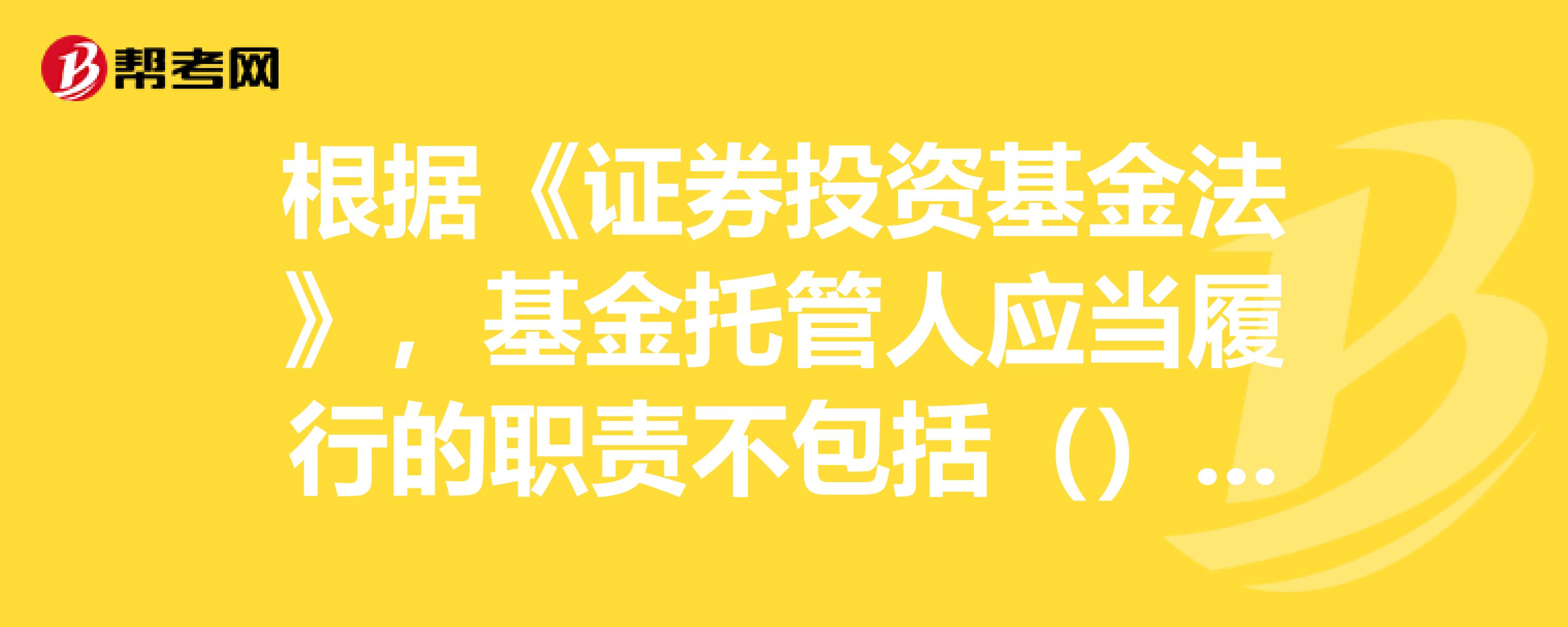 中国证监会对基金托管人的监管措施有哪些?:中国证监会对基金托管人的监管措施有哪些?是指根据基金合同的规定直接控制和管理基金财产并按照基金管理人的指示进行具体资金运作的基金当事人。责令暂停办理新的基金托管业务。(三)对基金托管人职责终止的监管措施:基金份额持有人大会应当在6个月内选任新基金托管人,应当妥善保管基金财产和基金托管业务资料,及时办理基金财产和基金托管业务的移交手续,新基金托管人或者临时基金托管人应当及时接收。