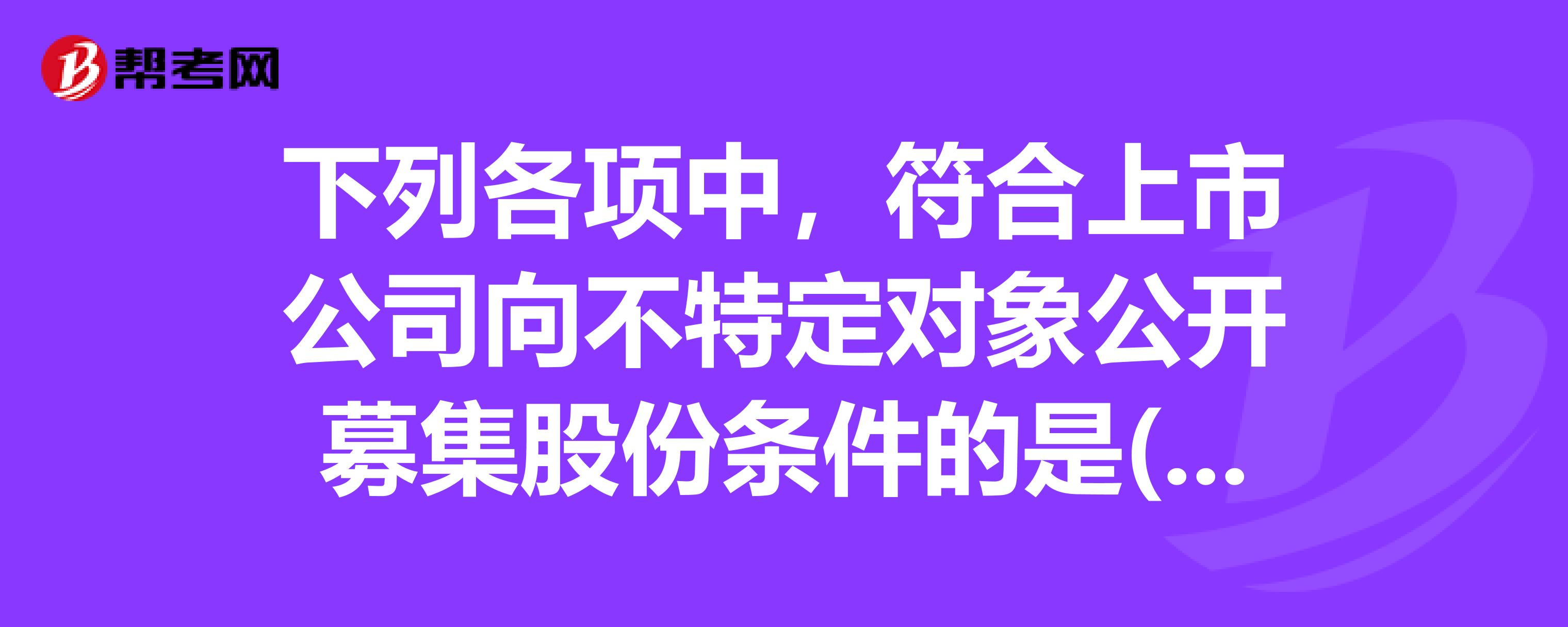 上市公司是什么?:上市公司:是指其股票在证券交易所上市交易的股份有限公司。至少要符合以下条件:(1)股票经国务院证券监督管理机构核准已公开发行;(2)公司股本总额不少于人民币三千万元;(3)公开发行的股份达到公司股份总数的百分之二十五以上;(4)公司股本总额超过人民币四亿元的,公开发行股份的比例为百分之十以上;(5)公司最近三年无重大违法行为,财务会计报告无虚假记载。