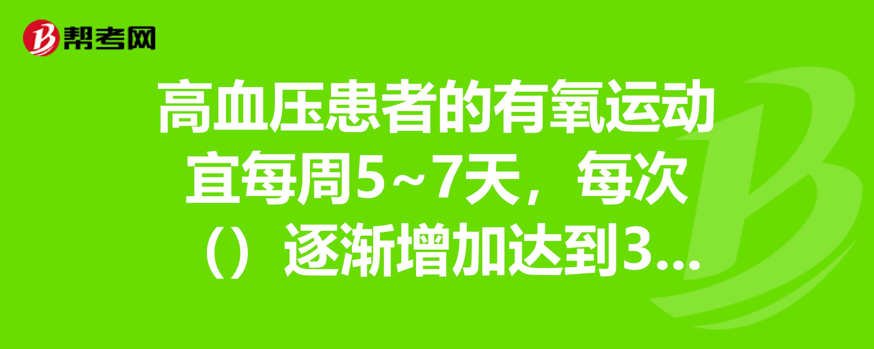 高血压患者的有氧运动宜每周5~7天,每次什么逐渐增加达到30分钟。在线求助