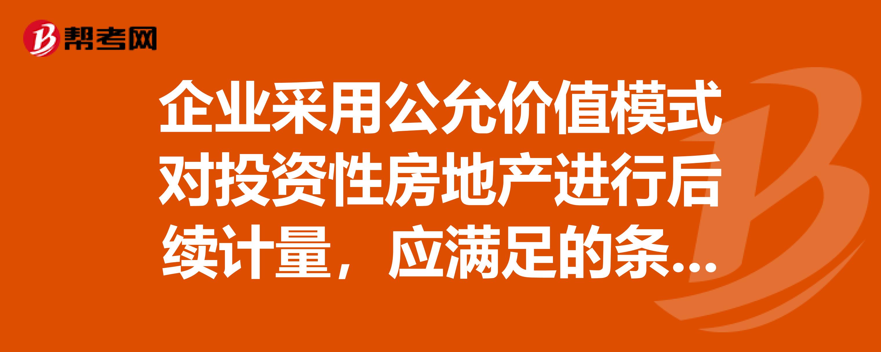 用公允价值模式计量投资性房地产是什么?:用公允价值模式计量投资性房地产是什么?采用公允价值模式进行后续计量的投资性房地产,同时满足投资性房地产所在地有活跃的房地产交易市场、所在地通常指投资性房地产所在的城市(对于大中型城市,应当为投资性房地产所在的城区)两个条件。