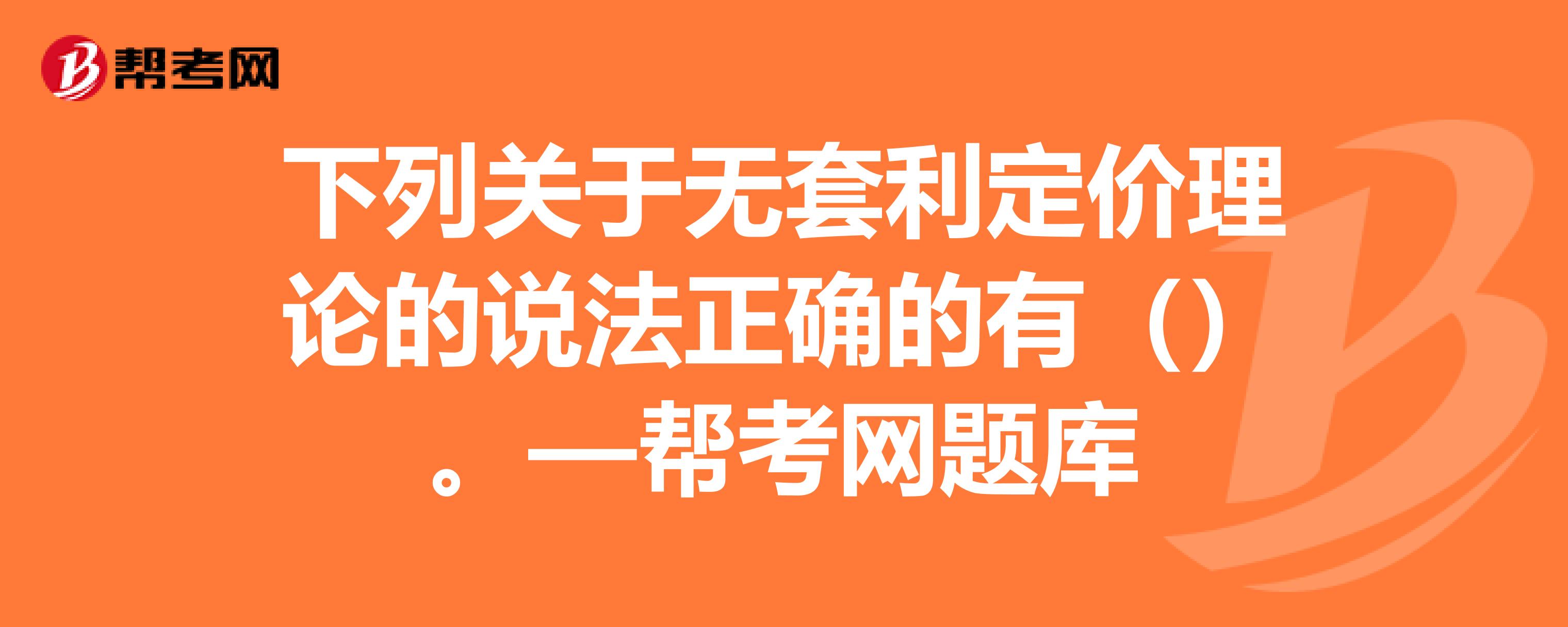 B、无套利市场上,两种金融资产未来的现金流完全相同,若两项资产的价格存在差异,则存在套利机会