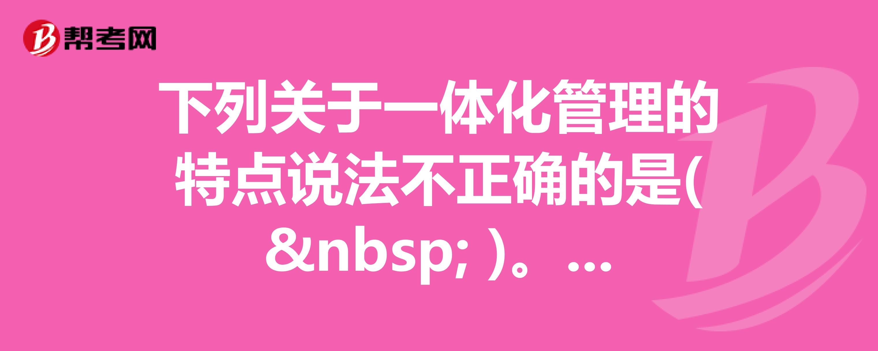 下列关于一体化管理的特点说法不正确的是()。