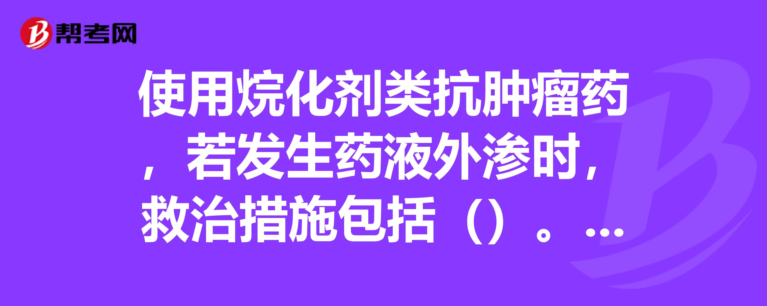 使用烷化剂类抗肿瘤药,若发生药液外渗时,救治措施包括什么。求助大侠