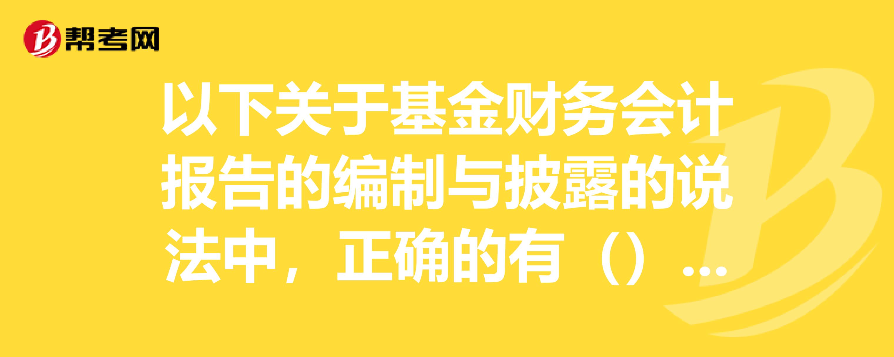 A、基金财务报表包括报告期末及前一个年度末的比较式资产负债表