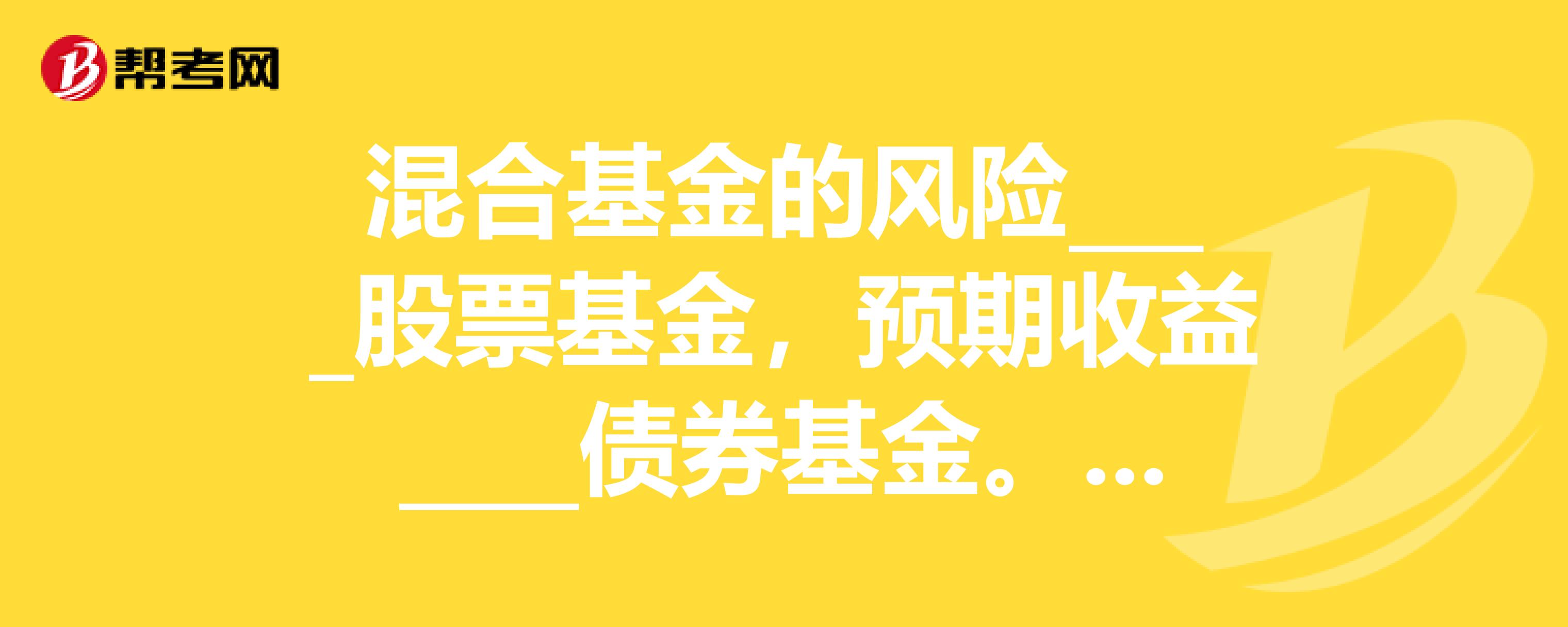 混合基金的风险____股票基金,预期收益____债券基金。什么求助大侠