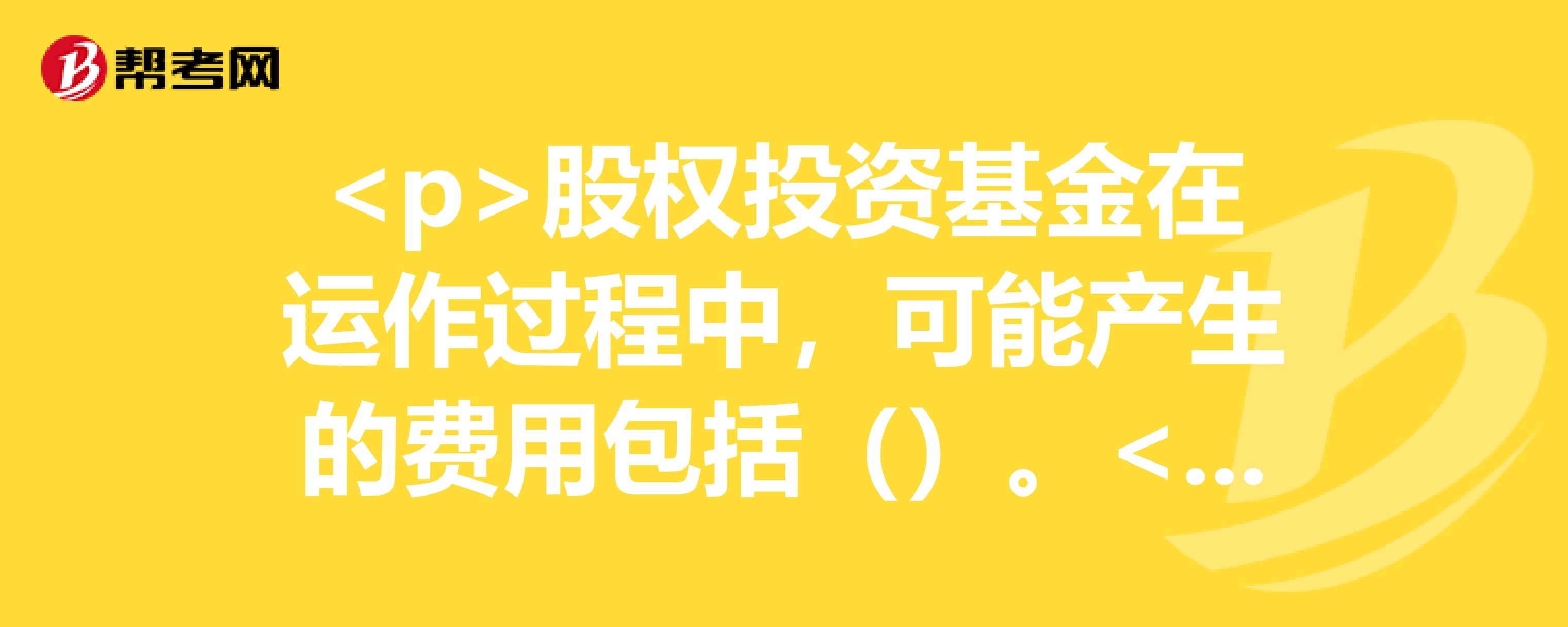 股权投资基金在运作过程中,可能产生的费用包括什么。Ⅰ.管理费Ⅱ.托管费Ⅲ.第三方服务费什么Ⅳ.筹建费求助大侠