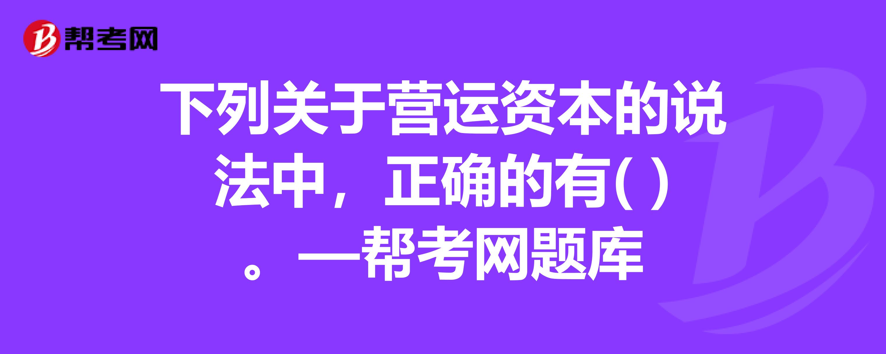 经营营运资本的计算公式是什么?:经营营运资本的计算公式是什么?(1)经营营运资本=经营性流动资产-经营性流动负债(基于管理用财务报表中的概念)(2)营运资本=流动资产-流动负债(营运资本是基于传统报表的概念)(3)经营营运资本净增加=经营营运资本增加=经营流动资产增加-经营流动负债增加