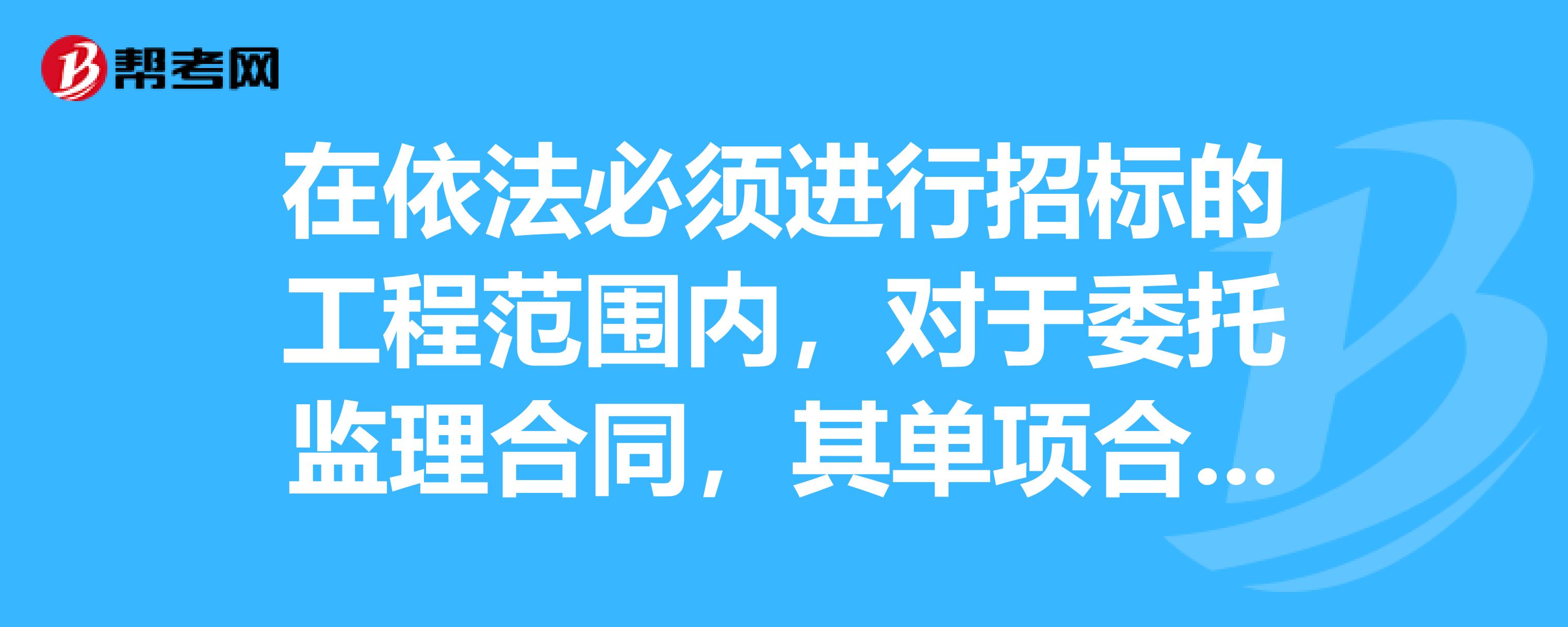 在依法必须进行招标的工程范围内,对于委托监理合同,其单项合同估算价最低金额在()万元人民币以上的,必须进行招标。在线求助
