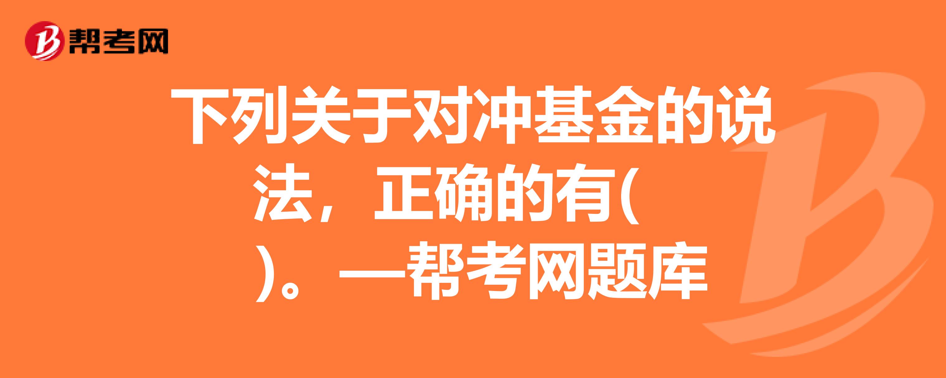 A、又称避险基金,是指“风险对冲过的基金”