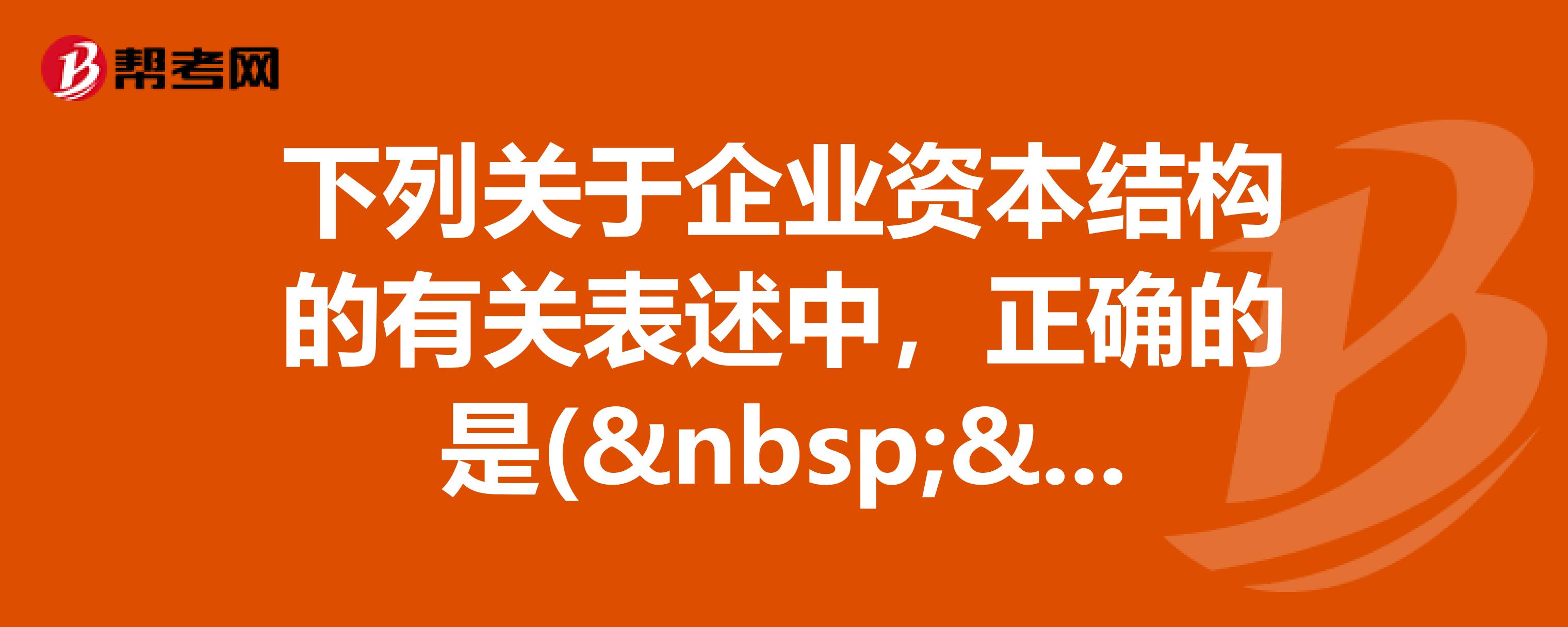 B、总价值最高的资本结构是最佳资本结构