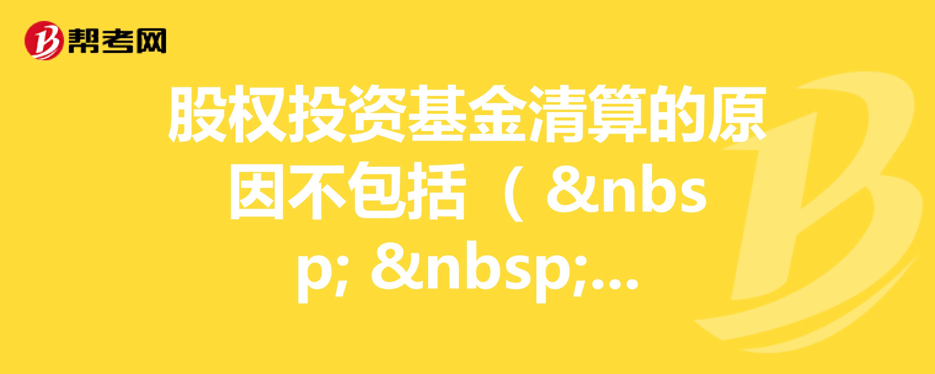 基金出现清算的主要原因是什么?:基金出现清算的主要原因是什么?股权投资基金清算的原因有以下几种:(2)基金全部投资项目都已经实现清算退出,且按照约定基金管理人决定不再进行重复投资;(3)基金股东会或股东大会、全体合伙人或份额持有人大会决定基金清算;(4)法律法规规定或基金合同约定的其他基金清算事由。【例题·单选题】股权投资基金被清算的原因不包括( )。B.基金持有人大会决定进行基金清算: