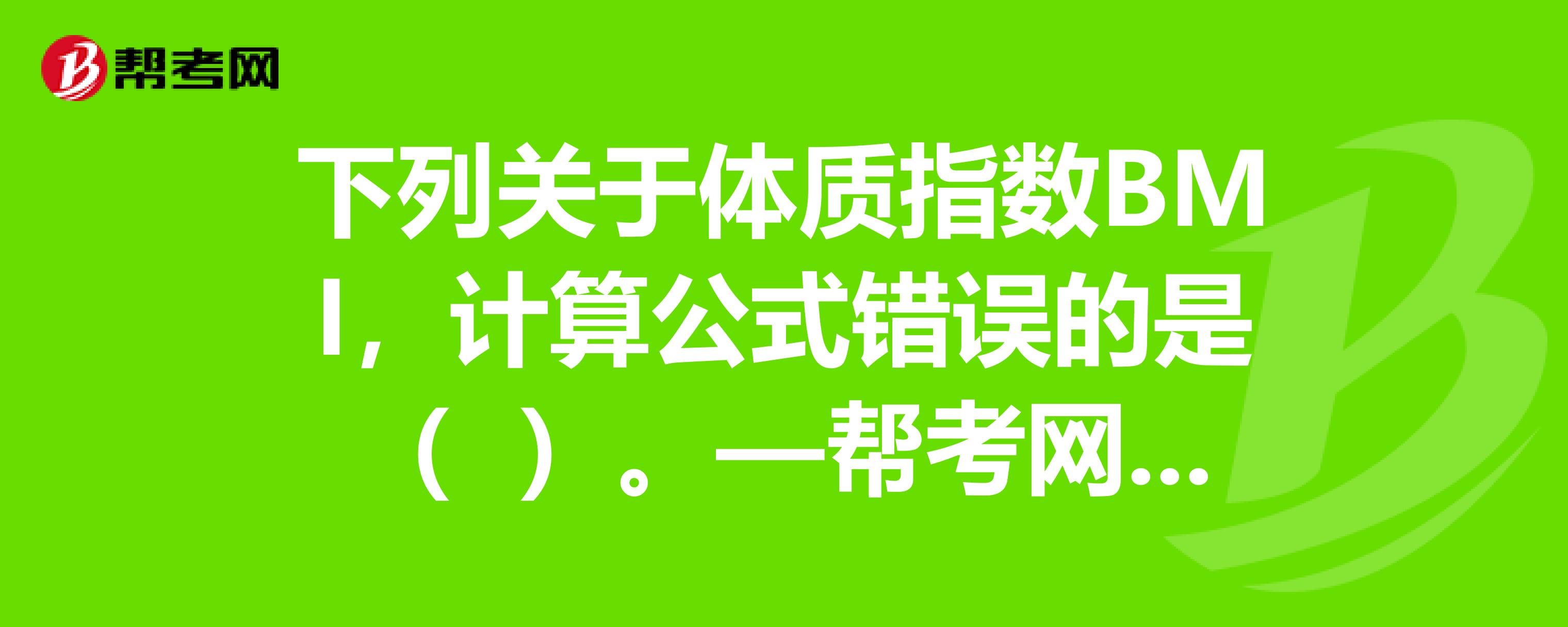 D、BMI=[身高(m) ]/ 体重(kg)