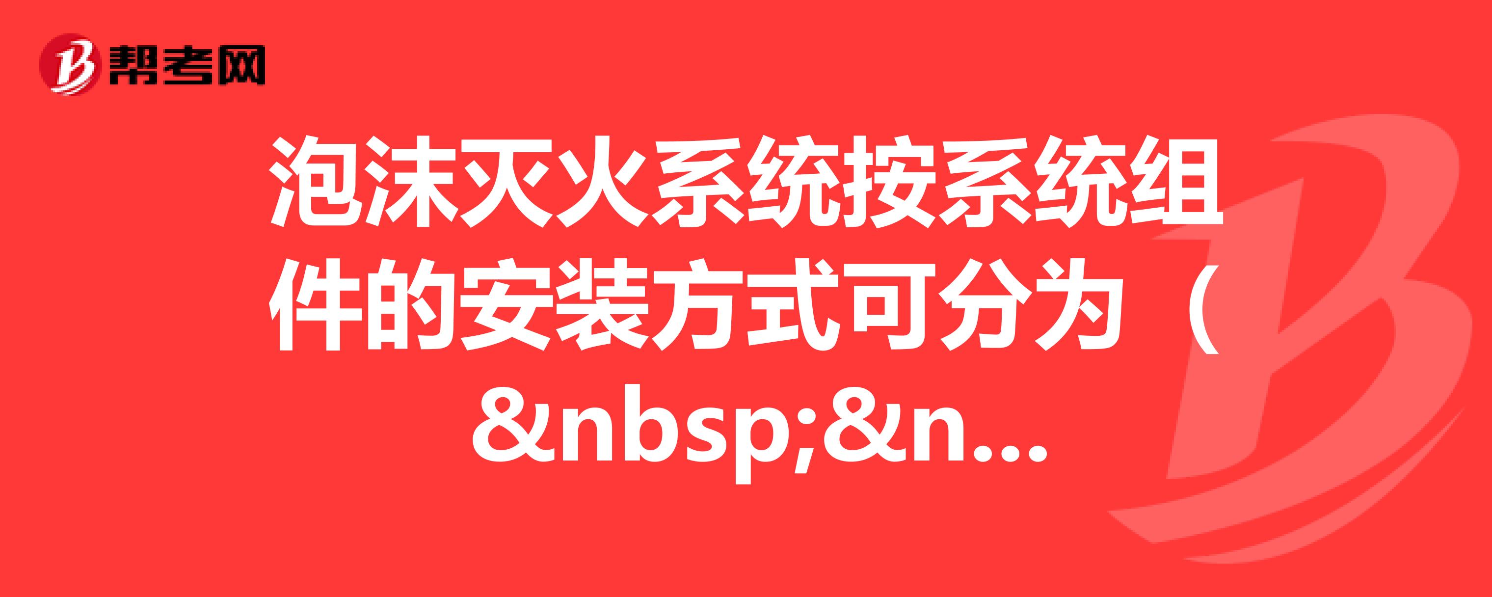 泡沫灭火系统阀门的安装应符合怎样的要求?:泡沫灭火系统阀门的安装应符合怎样的要求?泡沫灭火系统的安装主要包括泡沫液储罐、泡沫比例混合器(装置)、阀门、泡沫消火栓、泡沫产生装置等组件的安装。1)泡沫混合液管道采用的阀门有手动、电动、气动和液动阀门,3)液下喷射和半液下喷射泡沫灭火系统的泡沫管道进储罐处设置的钢质明杆闸阀和止回阀需要水平安装,4)高倍数泡沫产生器进口端泡沫混合液管道上设置的压力表、管道过滤器、控制阀一般要安装在水平支管上。