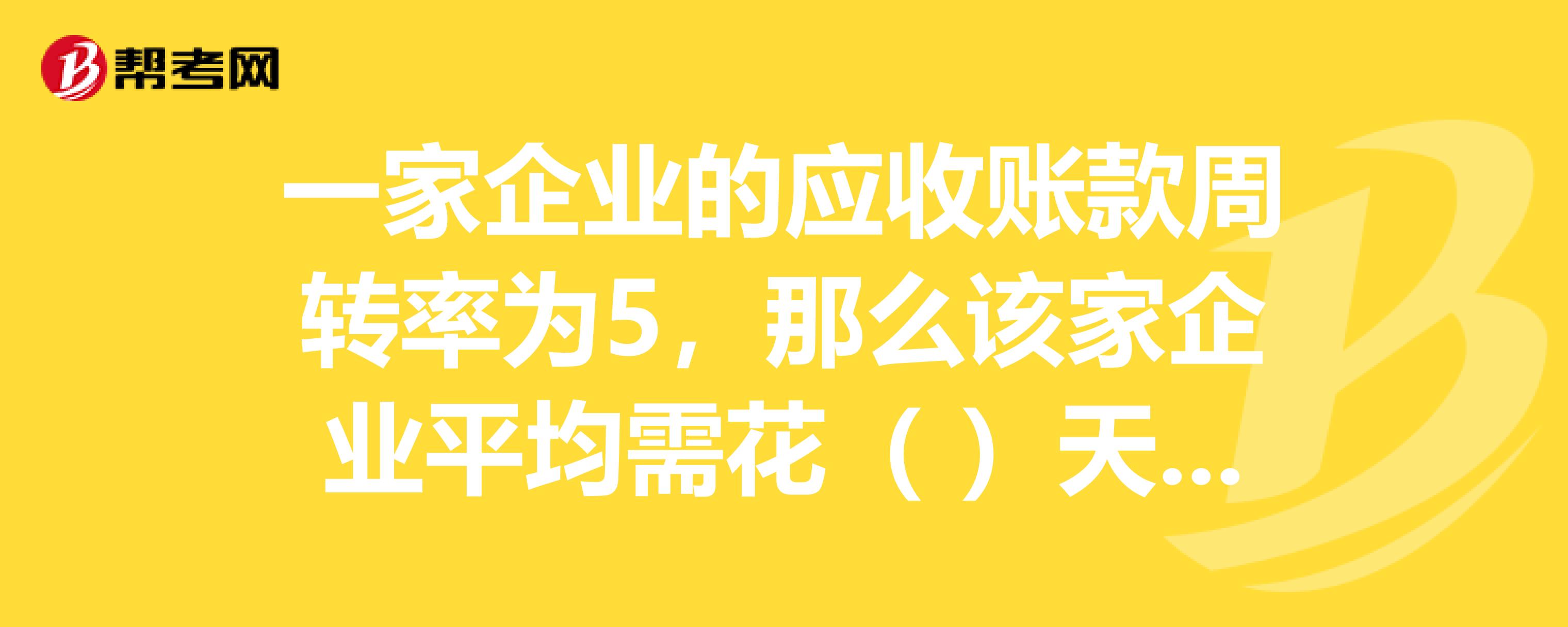 一家企业的应收账款周转率为5,那么该家企业平均需花什么天收回一次账面上的全部应收账款。求助