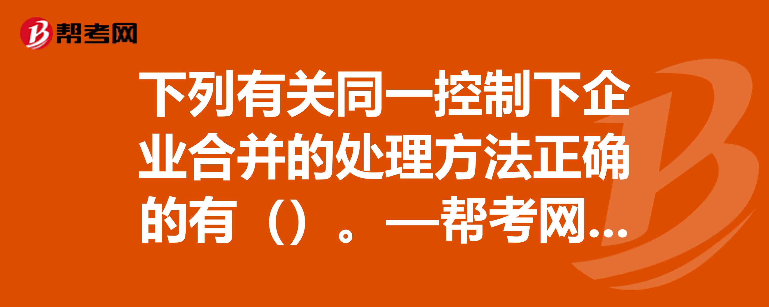 同一控制下企业合并怎么处理?:同一控制下企业合并怎么处理?同一控制下企业合并:是指参与合并的企业在合并前后均受同一方或相同的多方最终控制且该控制并非暂时性的企业合并。同一控制下的控股合并:长期股权投资的确认和计量。长期股权投资(合并日于享有被合并方相对于最终控制方而言的账面价值的份额):应收股利(享有被投资单位已宣告但尚未发放的现金股利)有关资产、负债(支付的合并对价的账面价值)股本(发行股票面值总额)