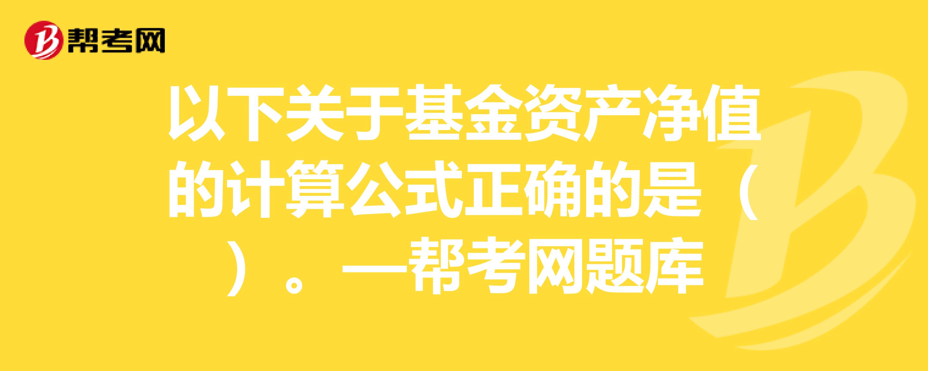 A、基金资产净值=基金资产-基金负债