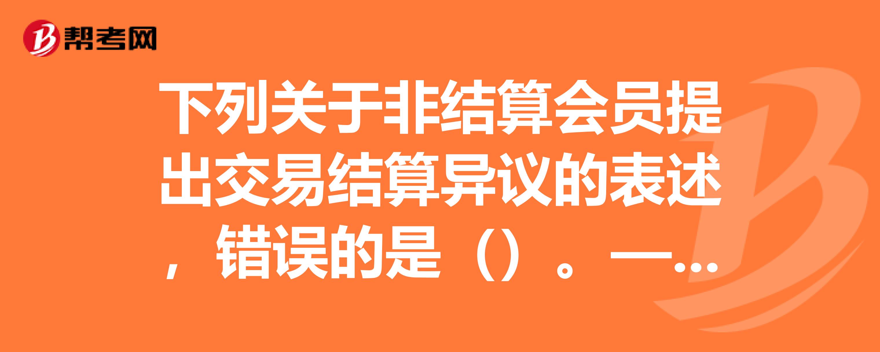 下列关于非结算会员提出交易结算异议的表述,错误的是()。