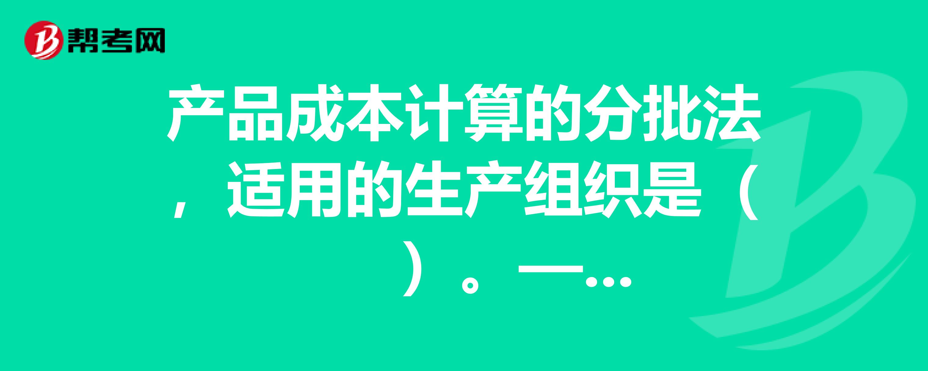 产品成本计算的分批法,适用的生产组织是()。求助大侠