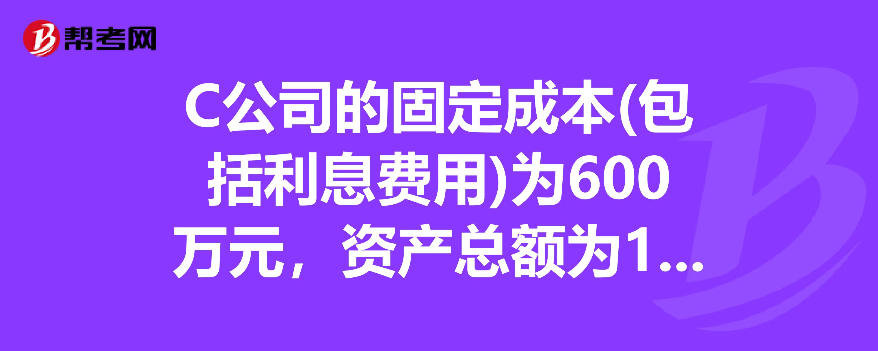 C公司的固定成本(包括利息费用)为600万元,资产总额为10000万元,资产负债率为50%,负债平均利息率为8%,净利润为800万元,该公司适用的所得税税率为20%,则税前经营利润对销量的敏感系数是什么?求助,在线等