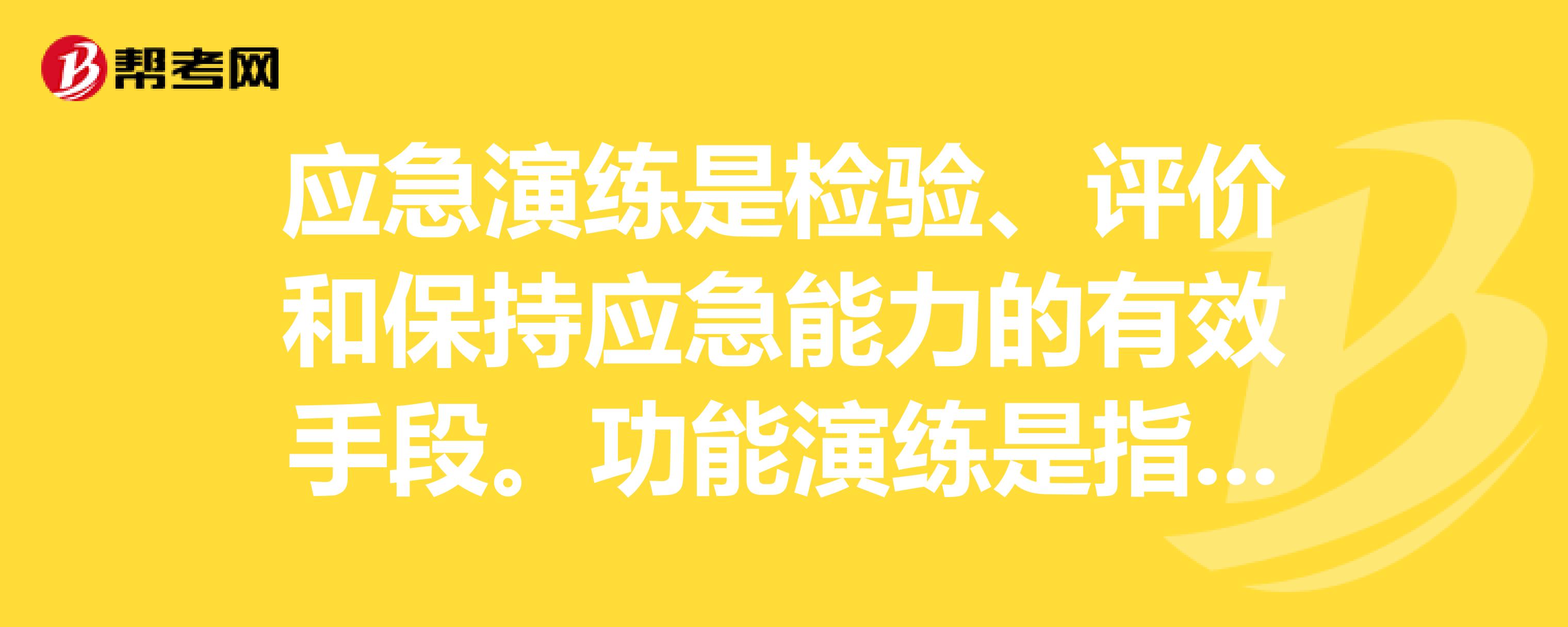 B、主要目的是针对应急响应功能,检验应急人员以及应急体系的策划和响应能力