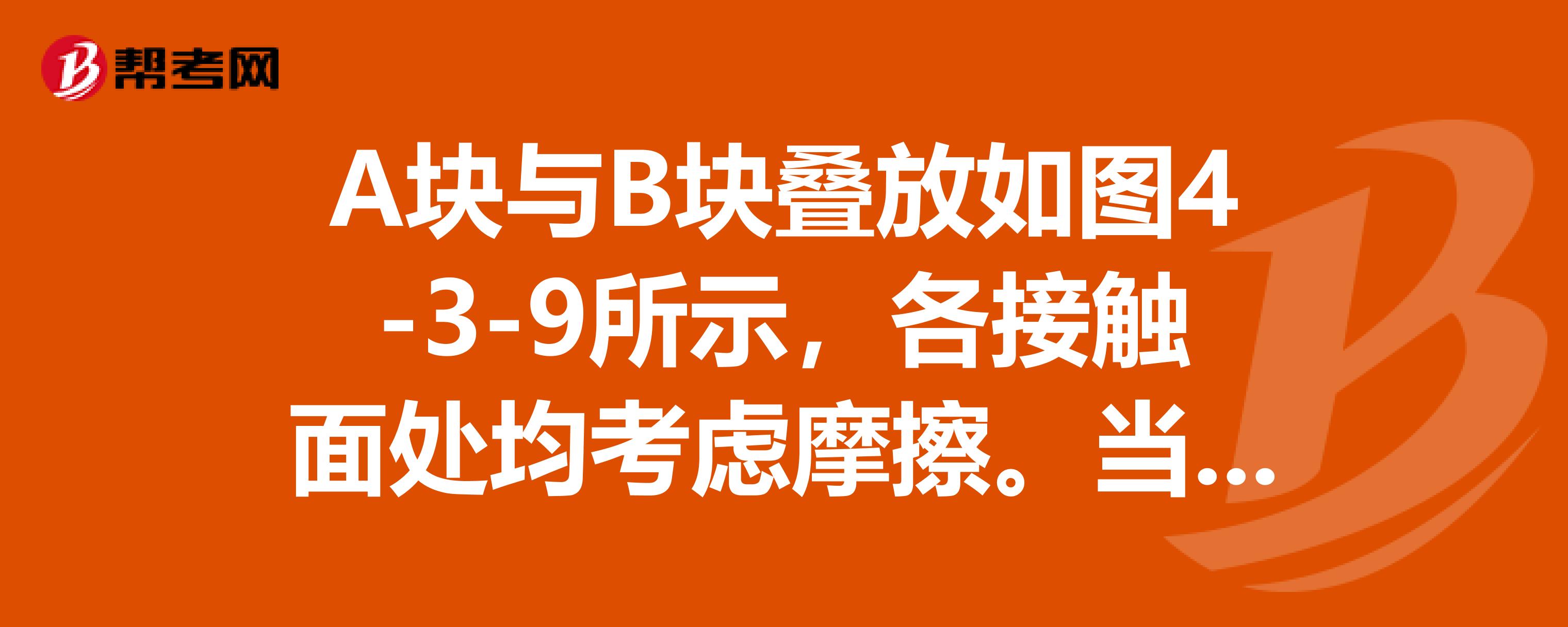 A块与B块叠放如图4-3-9所示,各接触面处均考虑摩擦。当B块受力F作用沿水平面运动时,A块仍静止于B块上,于是什么。谢谢