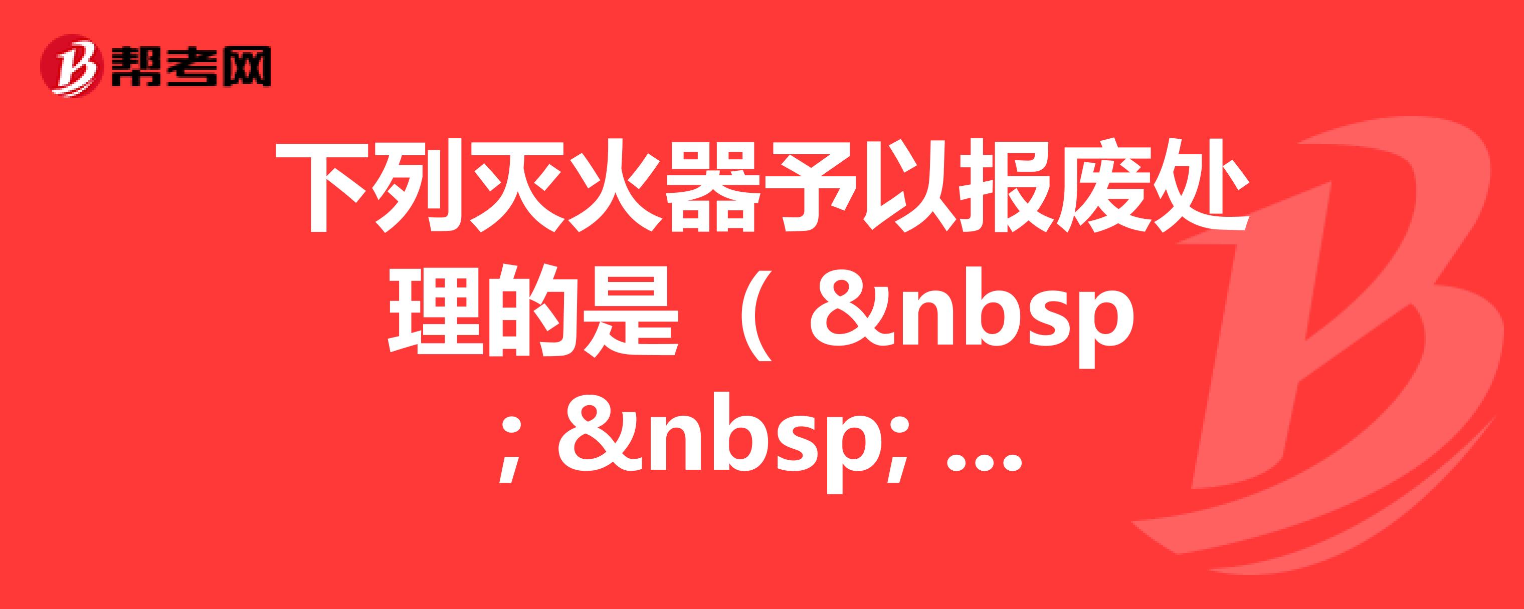哪种类型的灭火器应该报废?:哪种类型的灭火器应该报废?灭火器内放置化学物品,灭火器是常见的防火设施之一,不同种类的灭火器内装填的成分不一样,5.4.1下列类型的灭火器应报废:2.化学泡沫型灭火器;5.4.2有下列情况之一的灭火器应报废:5.4.3灭火器出厂时间达到或超过表5.4.3规定的报废期限时应报废。表5.3.2灭火器的报废期限如下:5.4.4灭火器报废后,【例题·单选题】灭火器使用一定年限后。