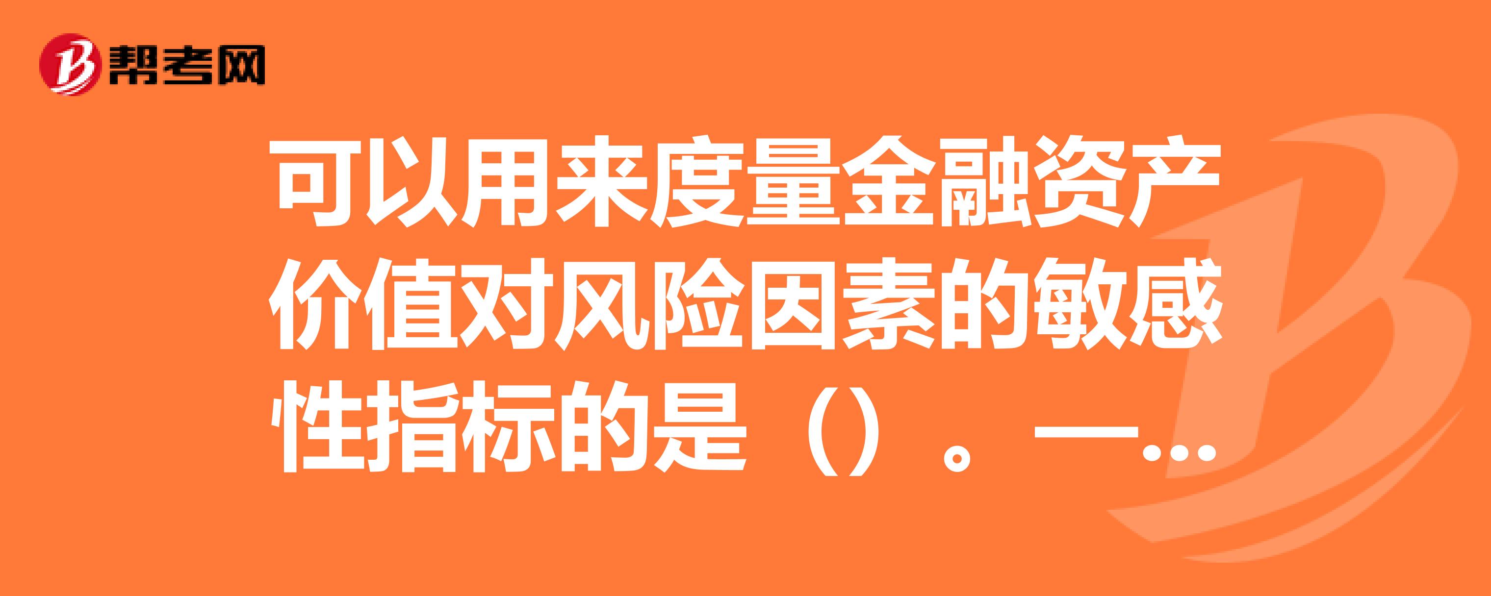 可以用来度量金融资产价值对风险因素的敏感性指标的是什么。求助大侠