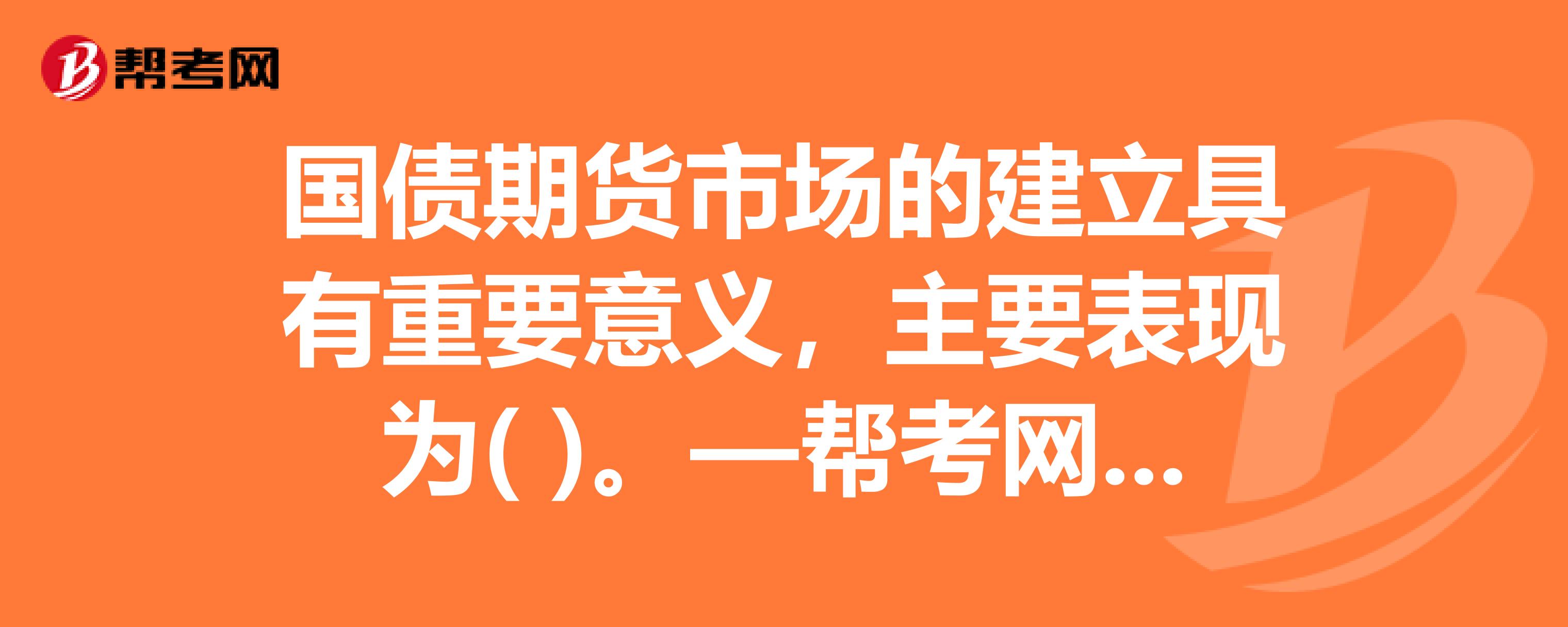 国债期货给投资者提供了规避利率风险的有效工具