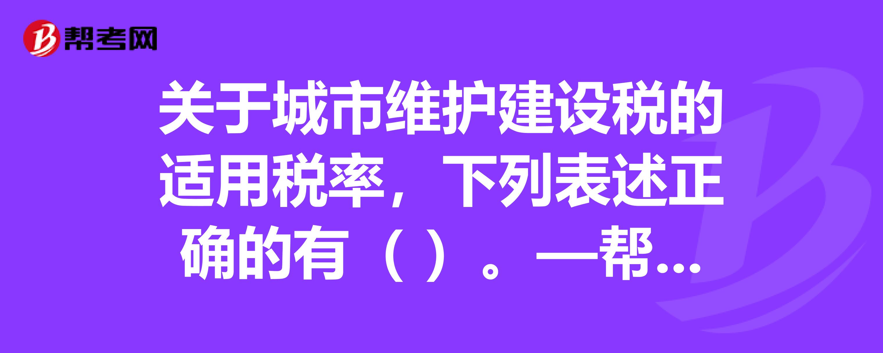 A、纳税人所在地为市区的,税率为7%