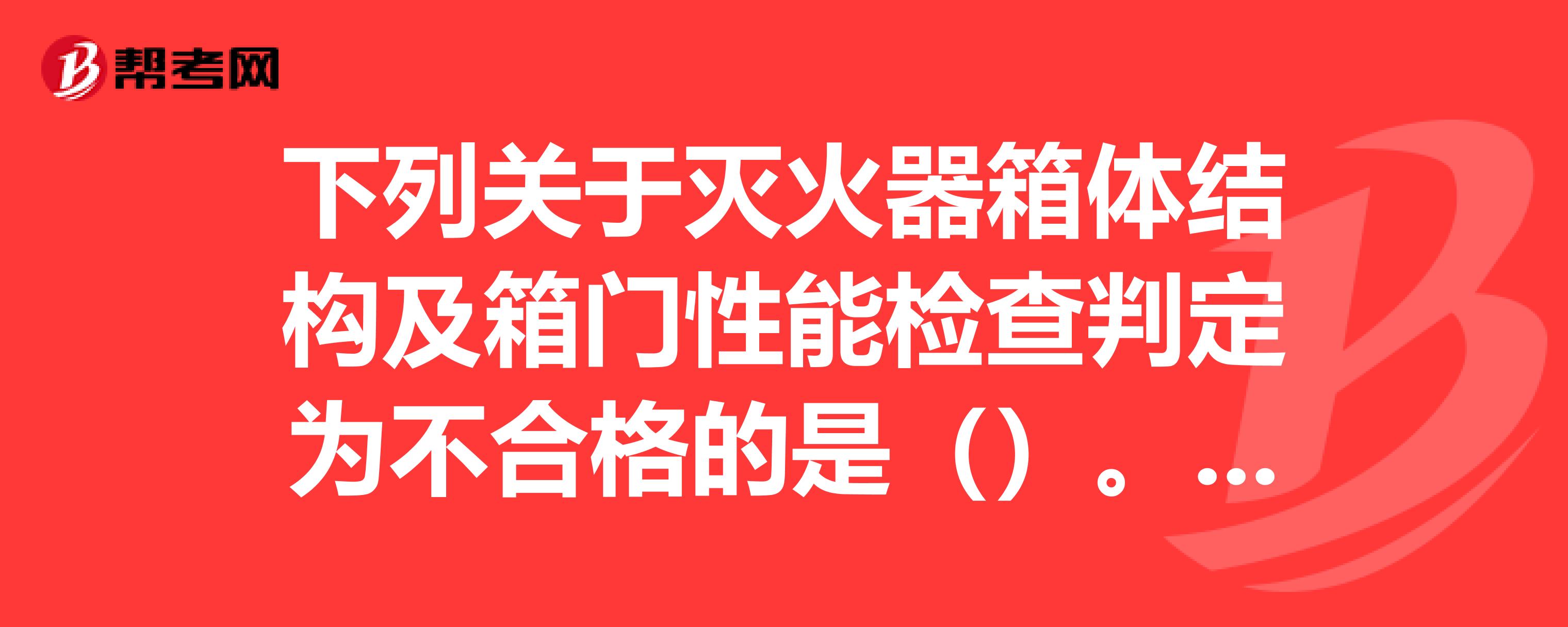 建筑灭火器及其附件结构检查的合格判定标准有哪些?:建筑灭火器及其附件结构检查的合格判定标准有哪些?首先对灭火器及其附件、灭火器箱等消防产品进行现场检查,灭火器的配置类型、规格、数量等应符合消防设计文件要求;(3)除二氧化碳灭火器以外的贮压式灭火器装有压力指示器。压力指示器20℃时显示的工作压力值与灭火器标志上标注的20℃的充装压力相同。(5)3kg(L)以上充装量的配有喷射软管。