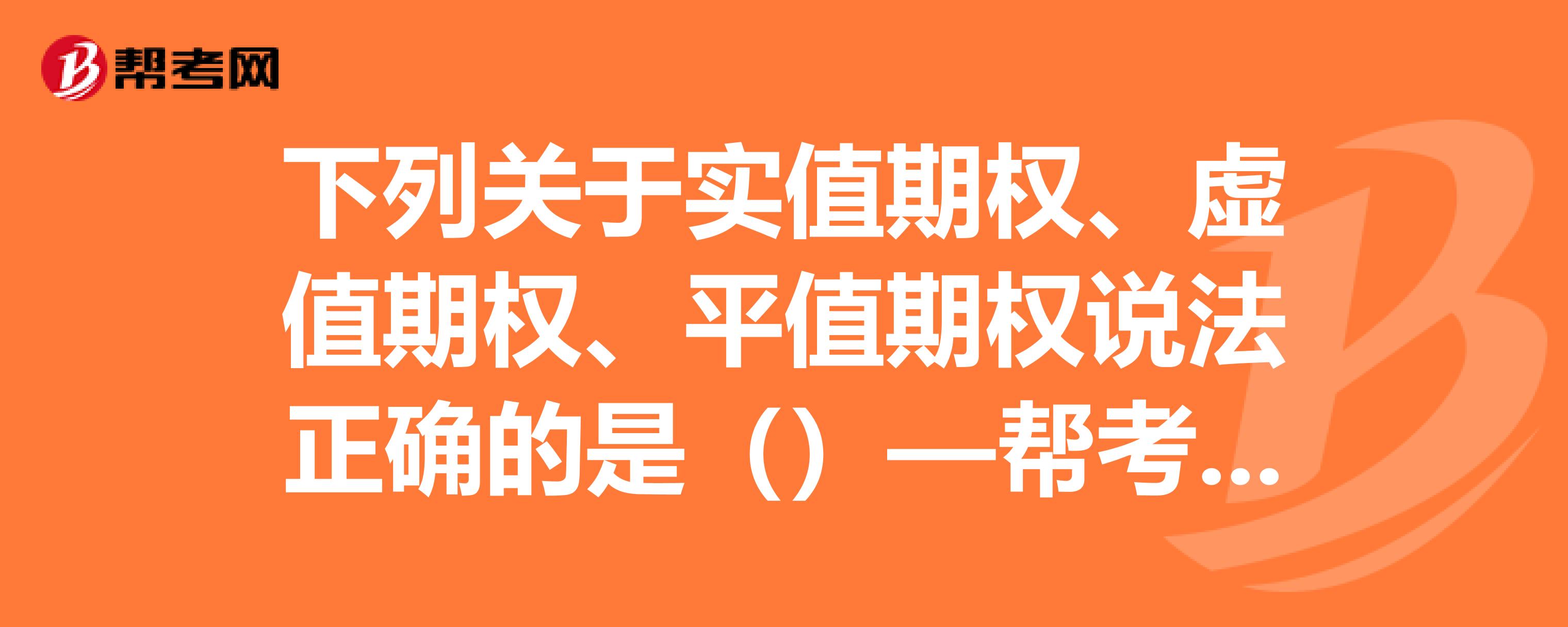 B、平值期权的内涵价值等于零