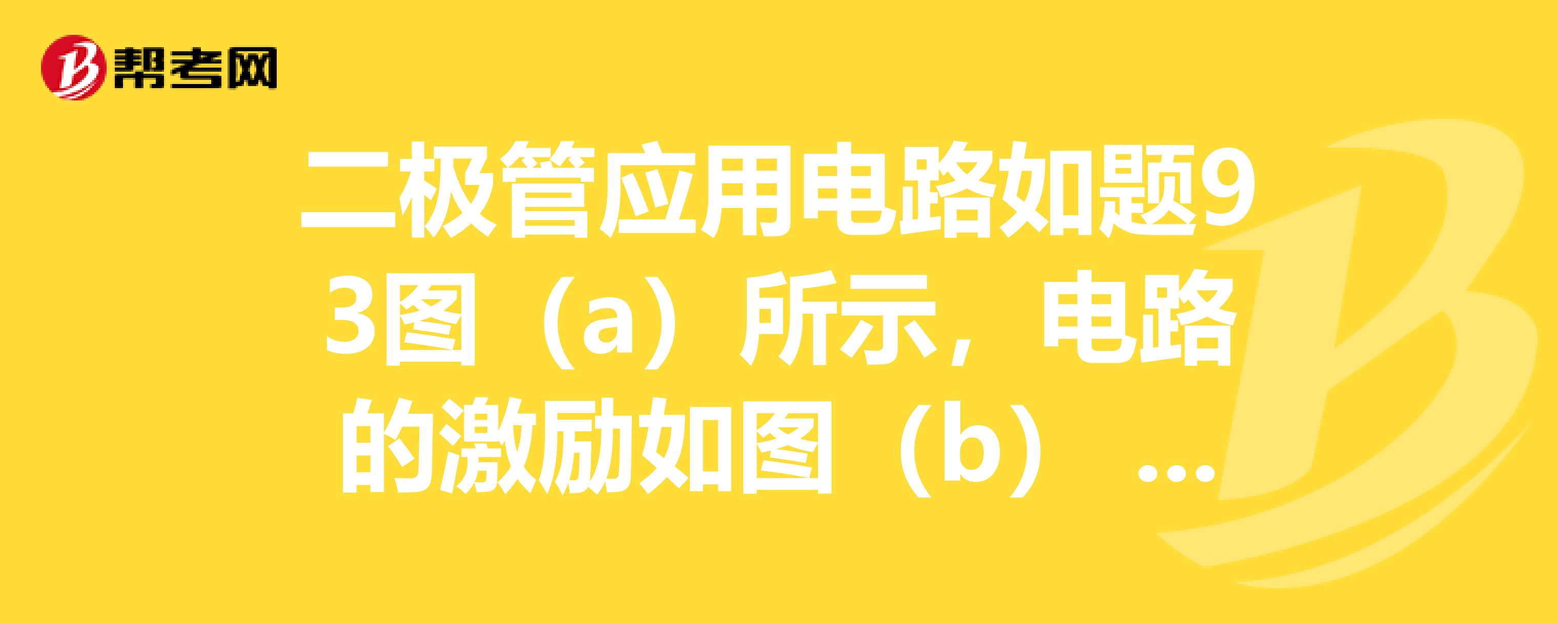 二极管应用电路如题93图(a)所示,电路的激励如图(b)所示,设二极管为理想器件,则电路的输出电压=什么。求助大侠