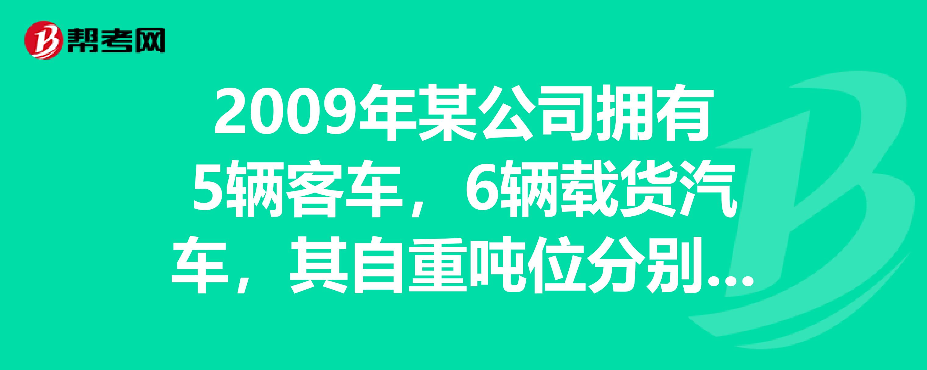 2009年某公司拥有5辆客车,6辆载货汽车,其自重吨位分别为4吨(2辆)、6吨(4辆)。当地车船税的年税额为:载客汽车每辆400元,载货汽车自重吨位每吨100元。2009年该公司应纳车船税()元。求助