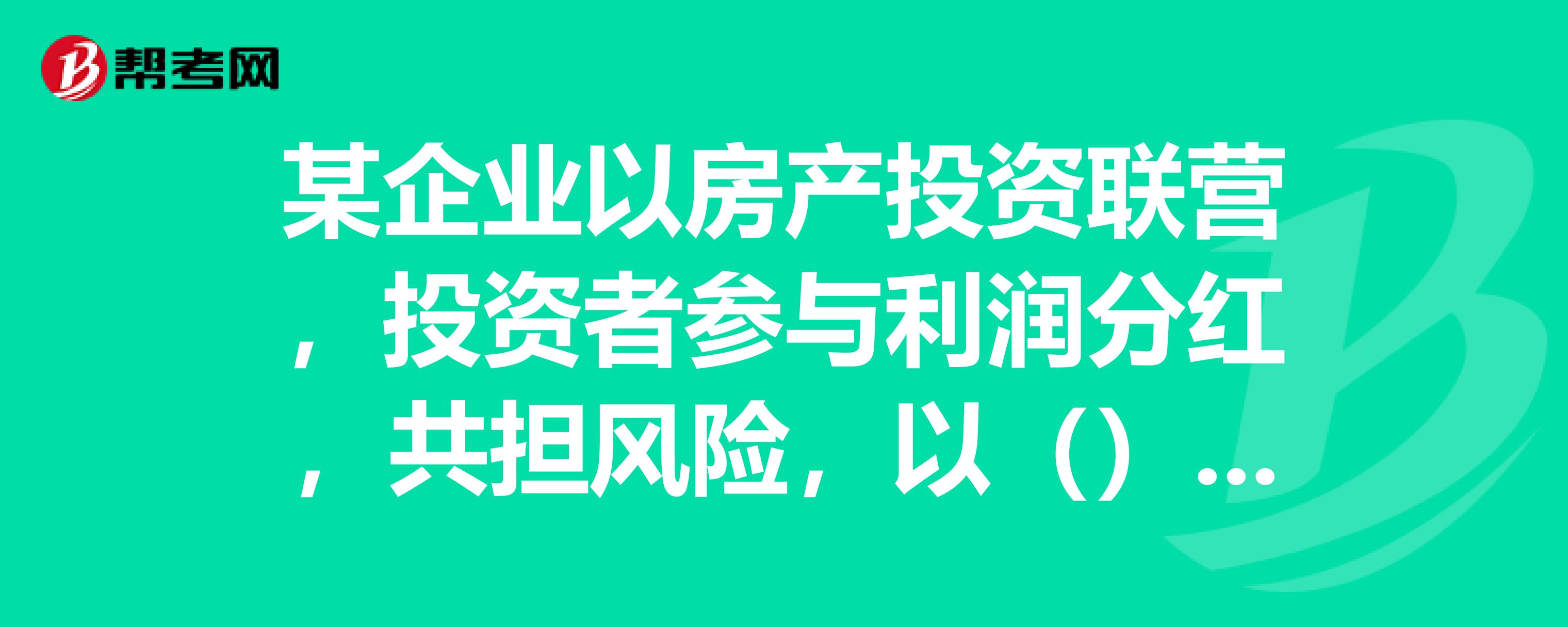 某企业以房产投资联营,投资者参与利润分红,共担风险,以什么为房产税的计税依据。求助