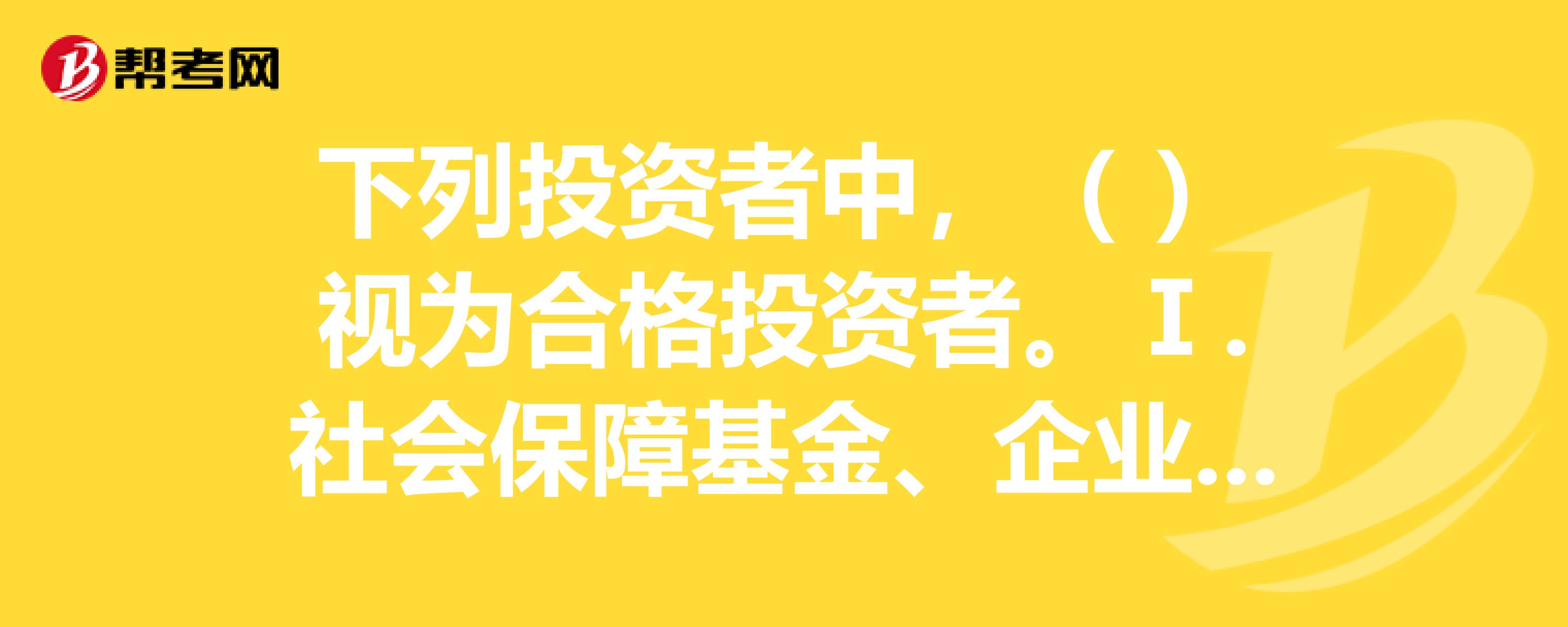 下列投资者中,()视为合格投资者。Ⅰ.社会保障基金、企业年金等养老基金和慈善基金等社会公益基金Ⅱ.依法设立并在中国证券投资基金业协会备案的投资计划Ⅲ.投资于所管理私募基金的私募基金管理人及其从业人员Ⅳ.中国证监会和中国证券投资基金业协会规定的其他投资者