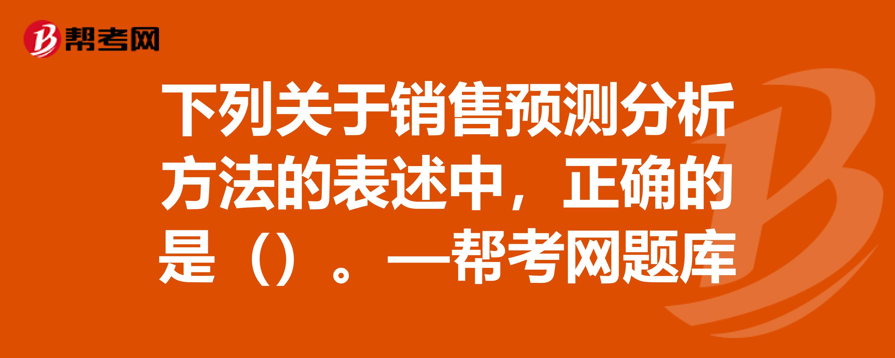 因果预测分析法是指什么?:因果预测分析法是指什么?因果预测分析法是指分析影响产品销售量(因变量)的相关因素(自变量)以及它们之间的函数关系,运用这种方法预测,【解析】定性分析法。对预测对象的未来情况及发展趋势做出预测的一种分析方法,销售预测的定性分析法主要包括营销员判断法、专家判断法和产品寿命周期分析法,它一般包括趋势预测分析法和因果预测分析法两大类属于因果预测分析的是( )